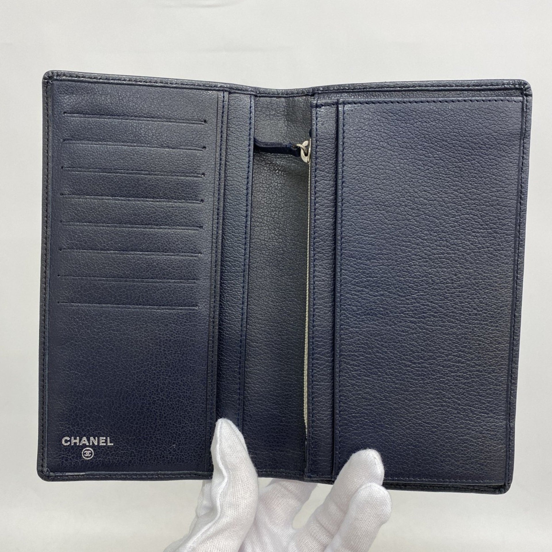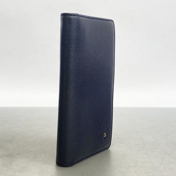 Chanel Camellia Leather Long Wallet Navy Women\'s