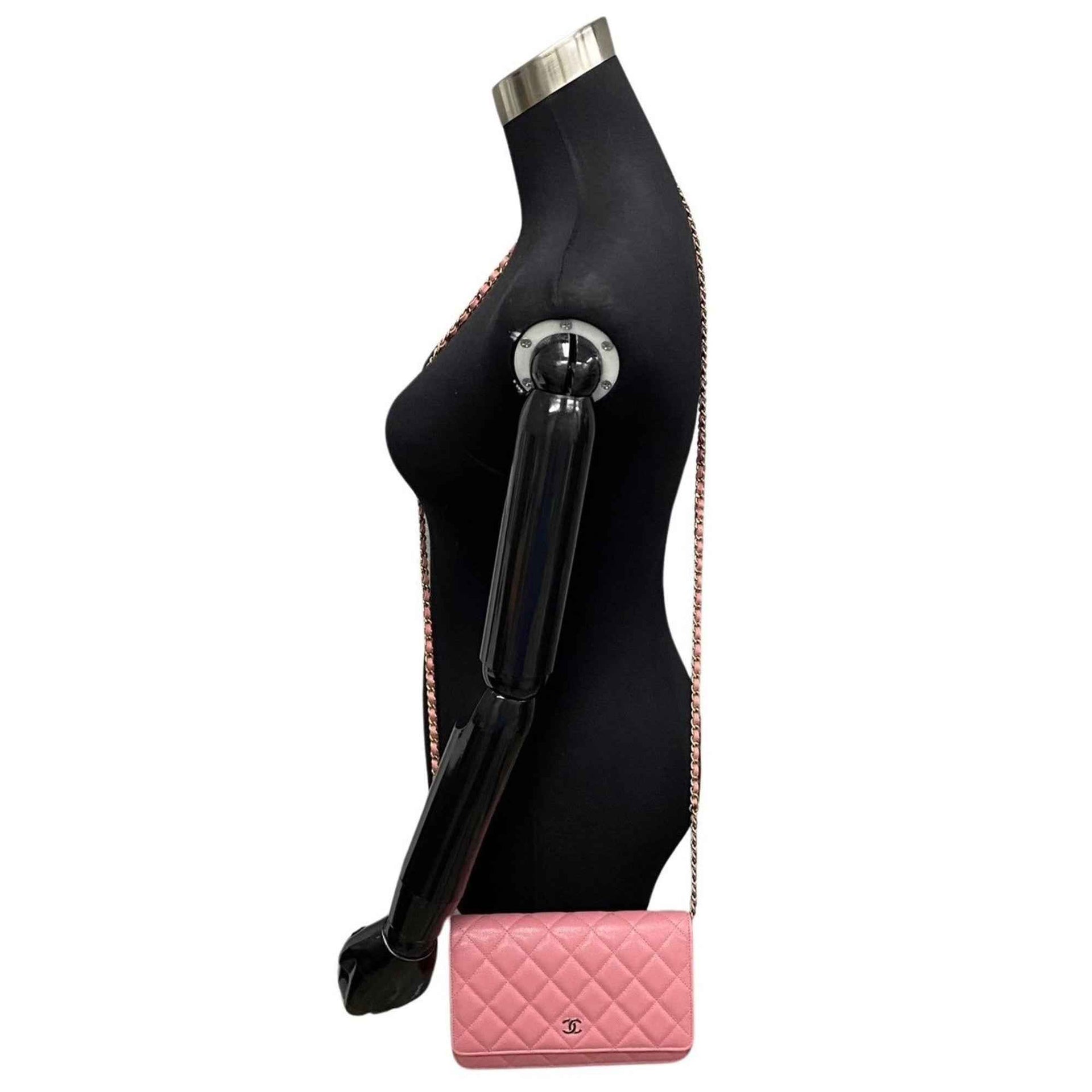 CHANEL Caviar Skin Matelasse Leather Chain Shoulder Bag Wallet Pink 15560