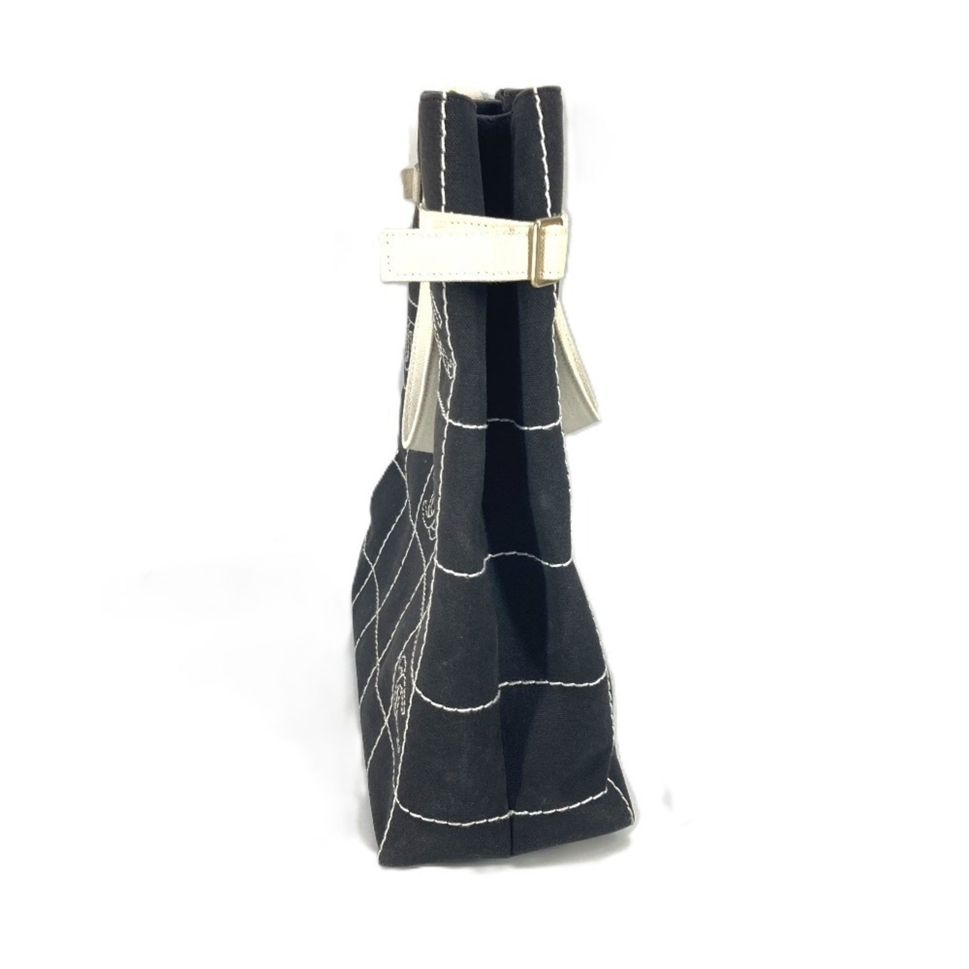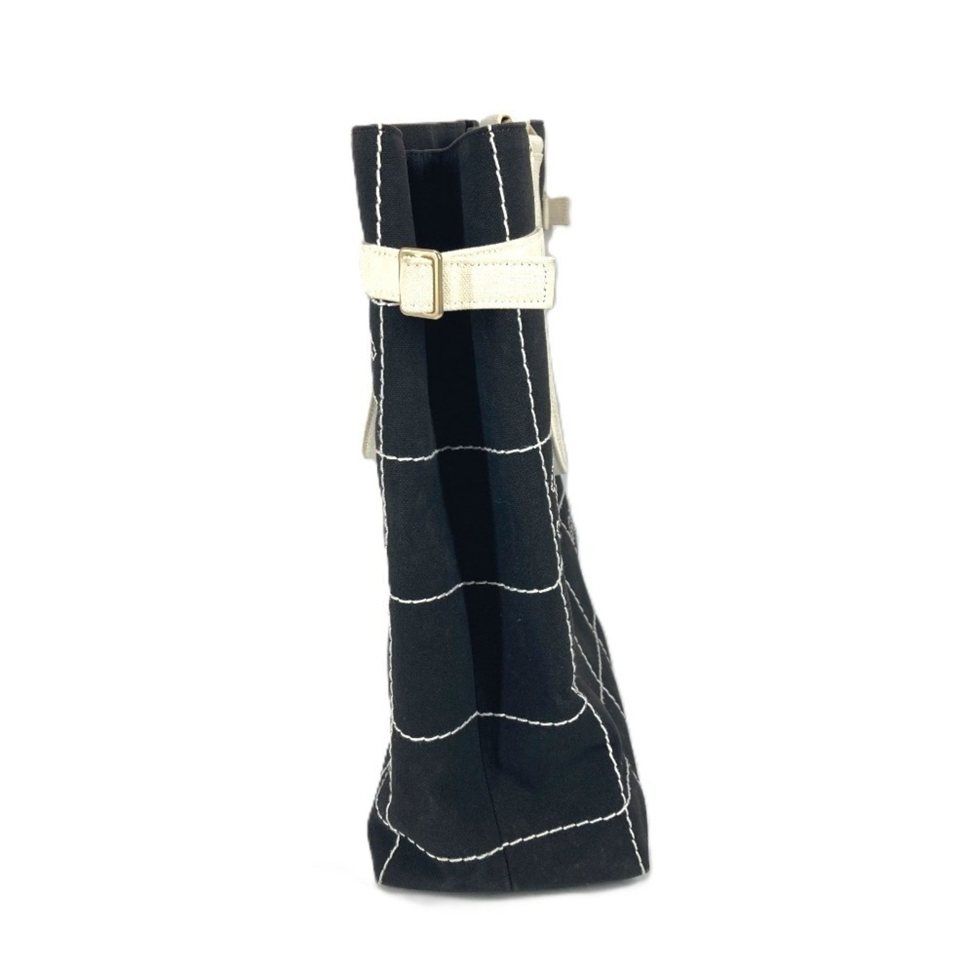 CHANEL CC Coco Mark Bicolor Tote Bag, Vertical Logo Shoulder Canvas, Women\'s, Black