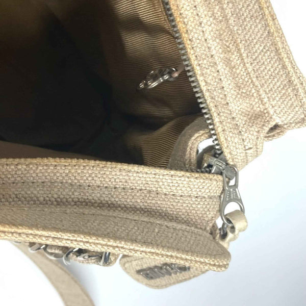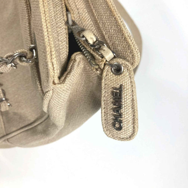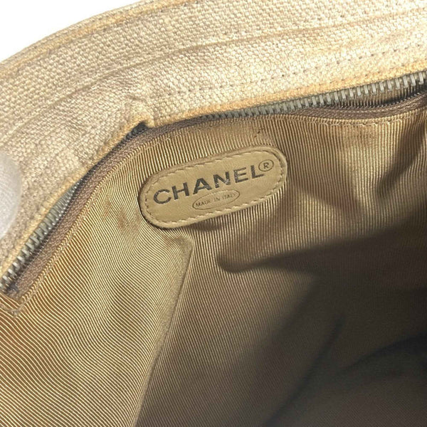 CHANEL CC Coco Mark Chain Tote Bag Shoulder Canvas Women\'s Beige