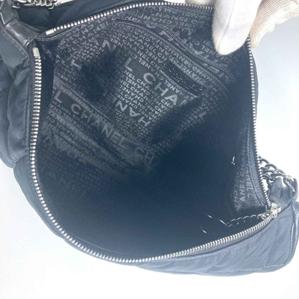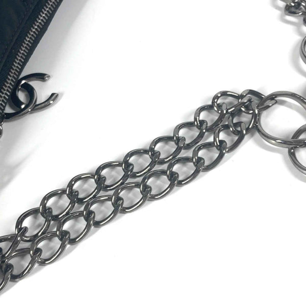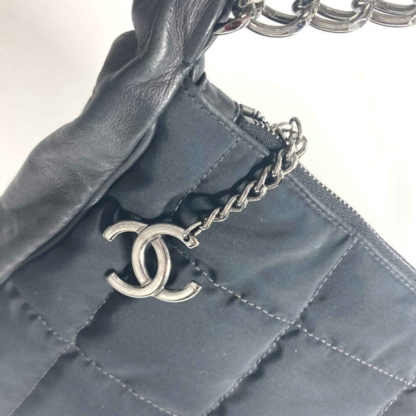 CHANEL CC Coco Mark Chocolate Bar Chain Shoulder Bag in Leather/Nylon, Black