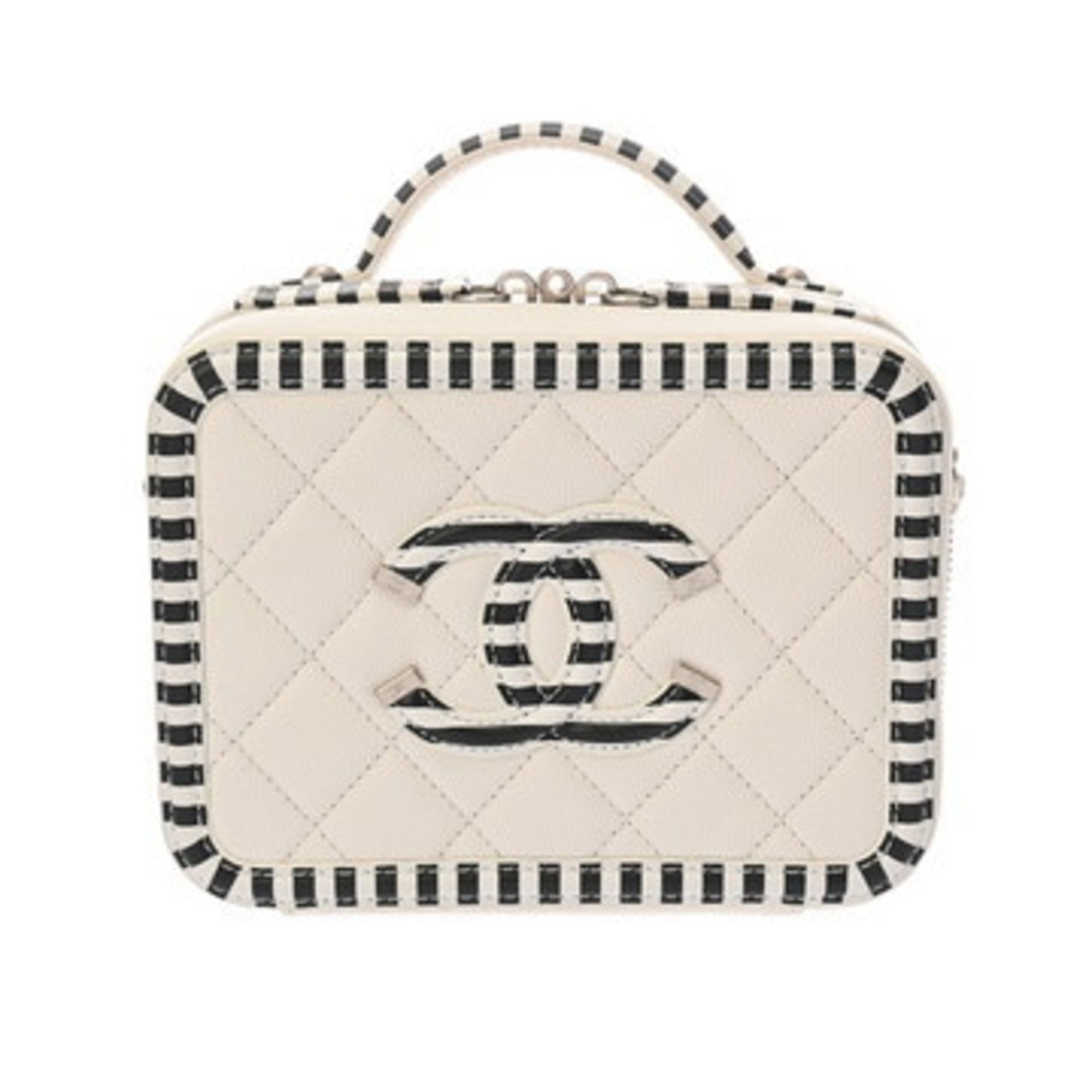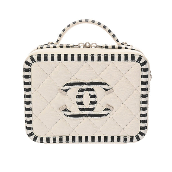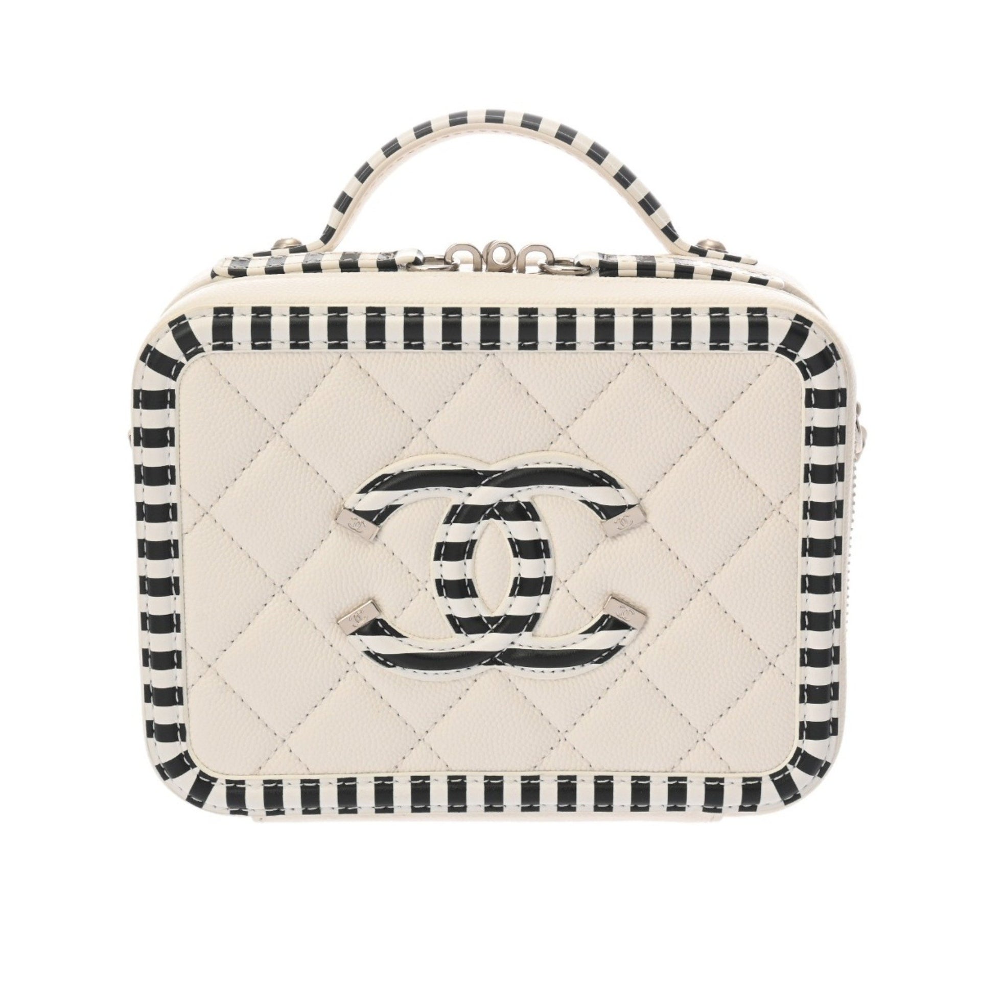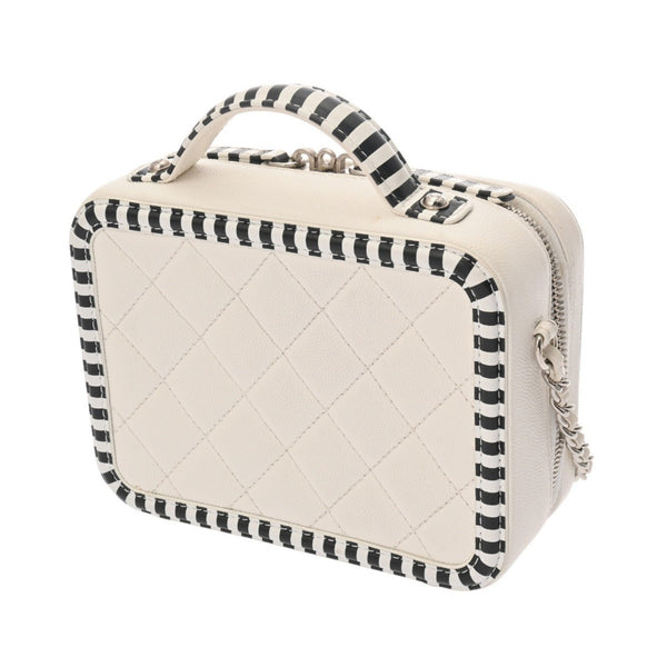 CHANEL CC Filigree 2-Way Chain Shoulder Bag in White Caviar Leather, Women\'s, AB