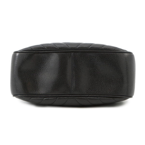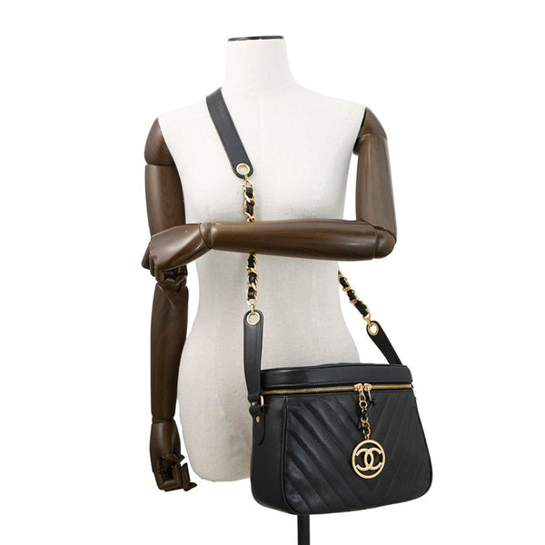 Chanel Chain Shoulder Bag, Chevron Coco Mark Vanity Caviar Skin, Black, V-Stitch