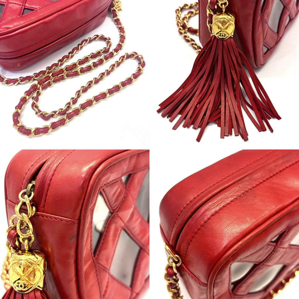 CHANEL Chain Shoulder Bag in Red Lambskin with Tassel