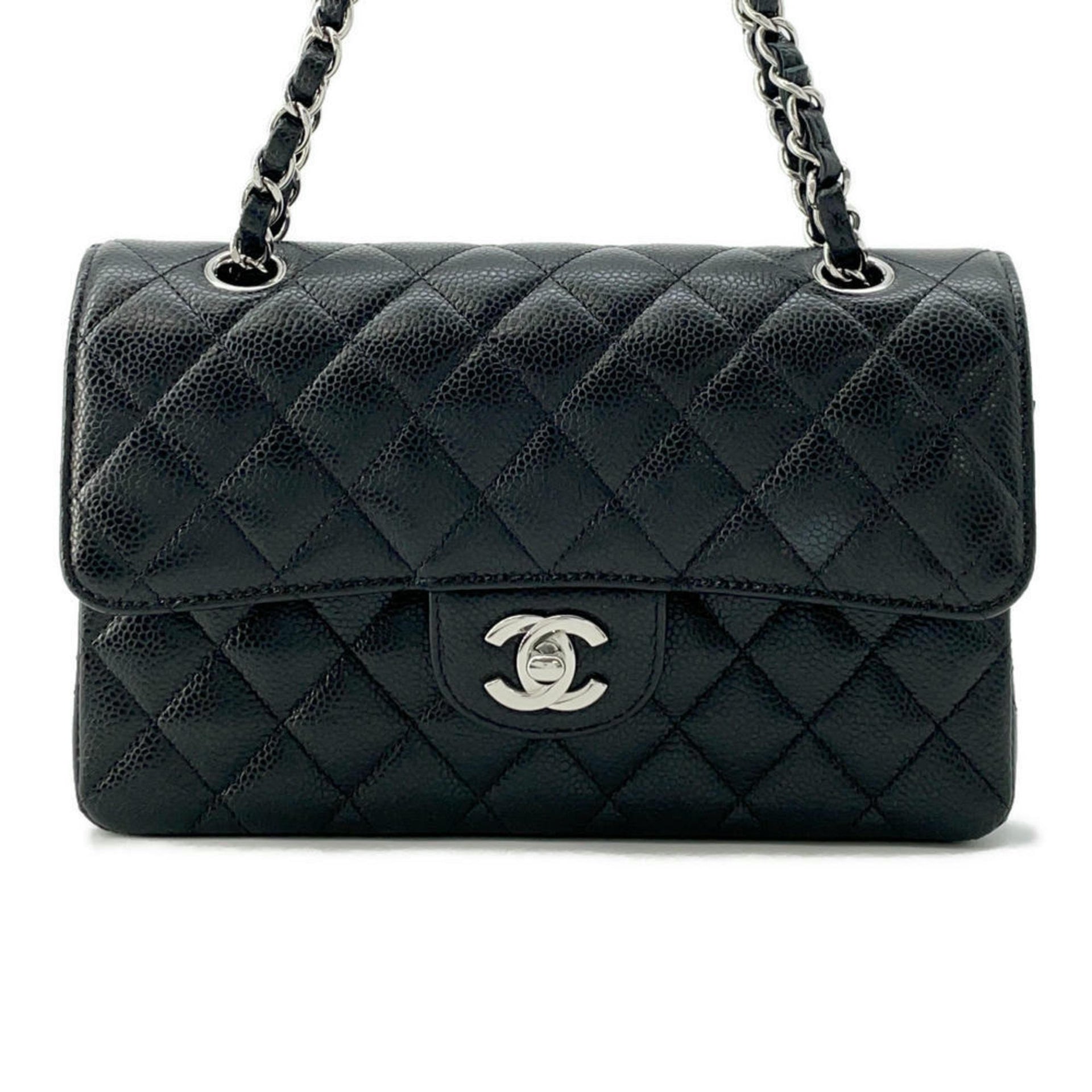 Chanel Chain Shoulder Bag Matelasse 23 Coco Mark Double Caviar Skin A01113 CHANEL Black