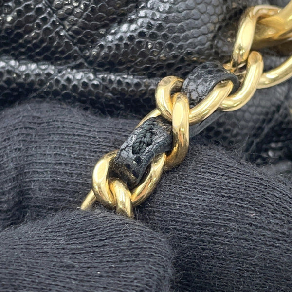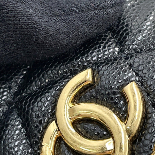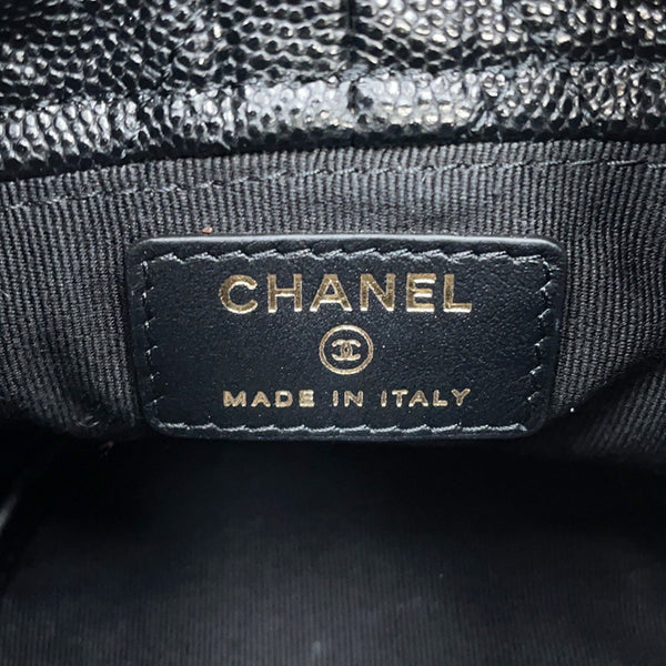 Chanel Chain Shoulder Bag, Matelasse Coco Mark Bucket Caviar Skin, AP3022, Black