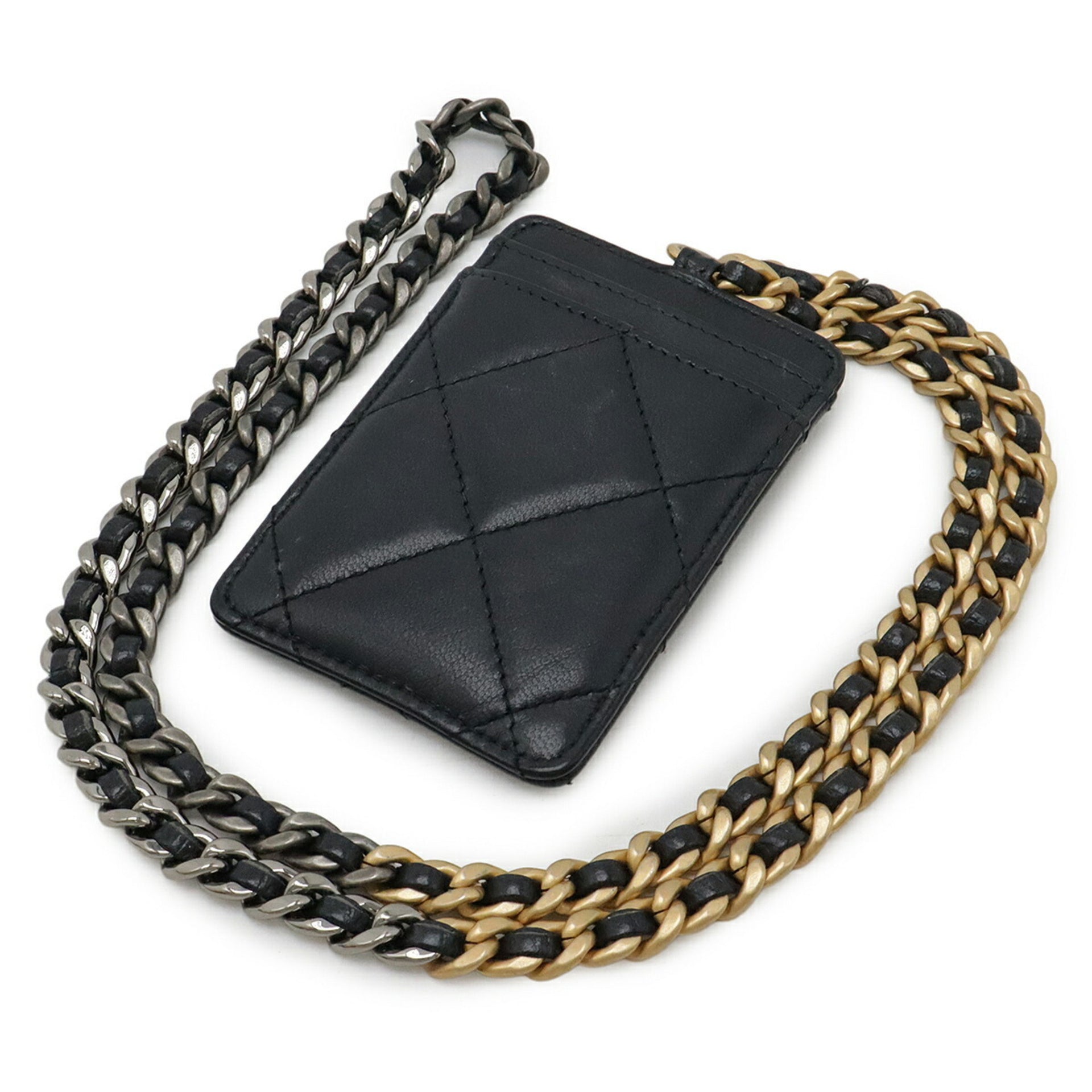 CHANEL Chanel 19 Matelasse Coco Mark Card Case/Pass Case with Chain Strap, Lambskin Leather, Black, AP1745