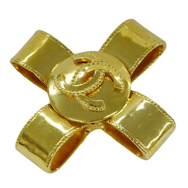 Chanel CHANEL Brooch for Women, Brand GP Cross Ribbon Coco Mark Gold 97A