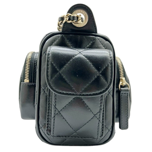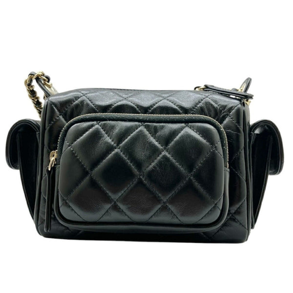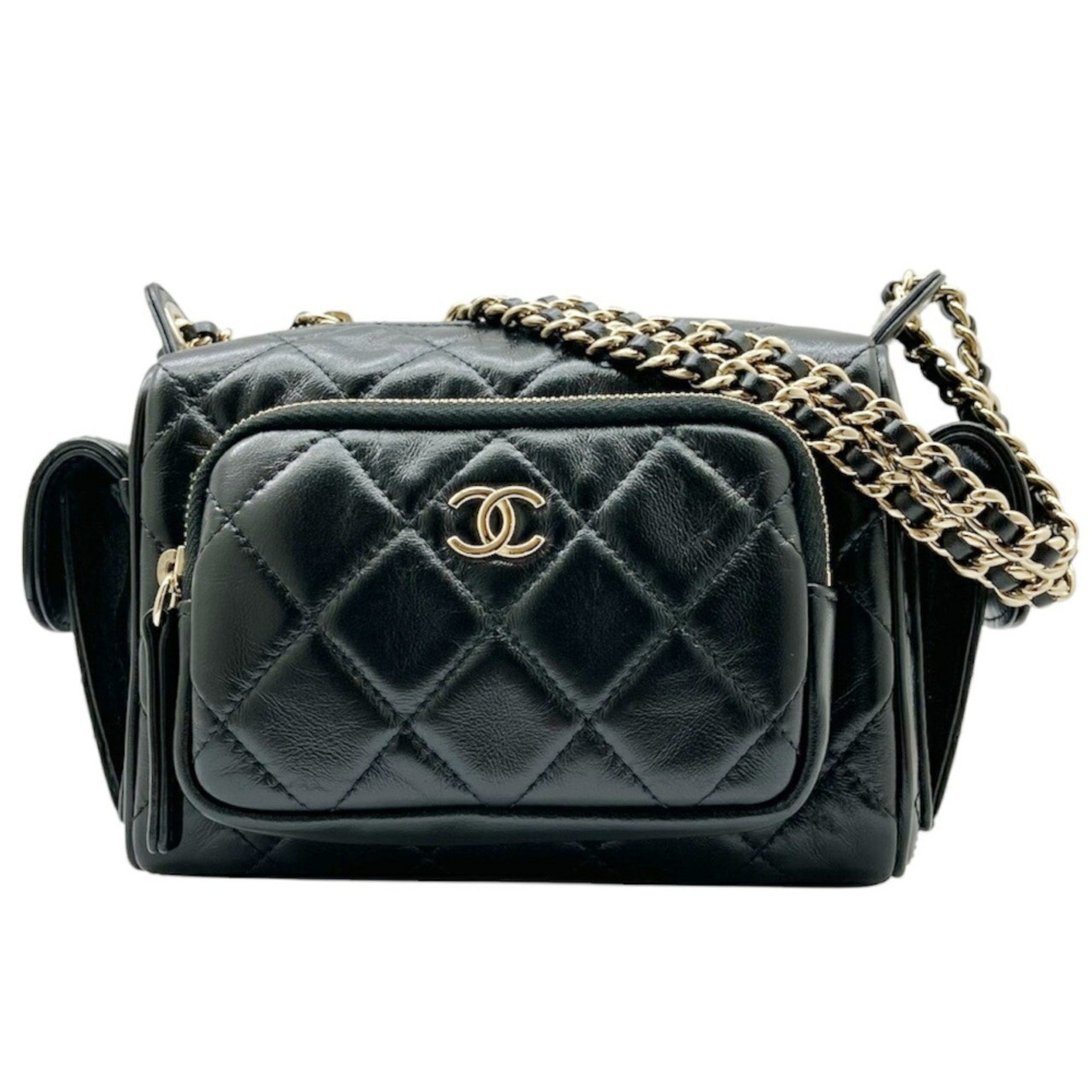 CHANEL Chanel Camera Case Bag Matelasse Lambskin Black AS5156 Shoulder Chain Women\'s Men\'s