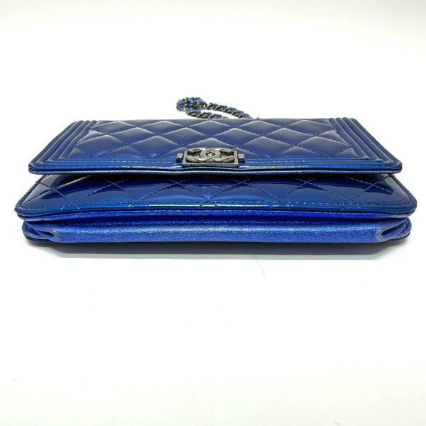 CHANEL Chanel long wallet chain bag Boy CC Coco Mark shoulder in patent leather, gunmetal blue