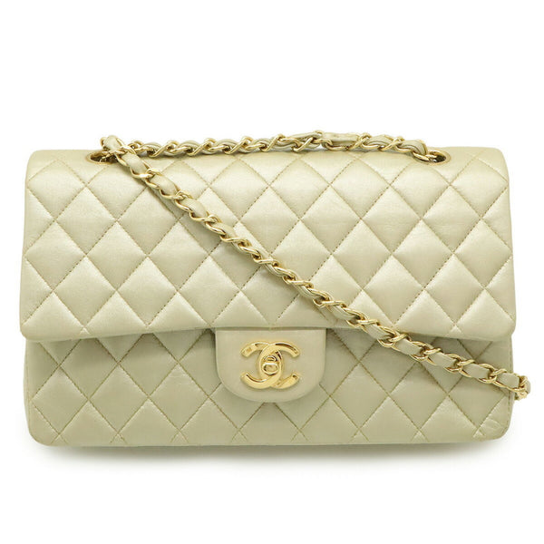 CHANEL Chanel Matelasse 25 Coco Mark Double Flap Chain Shoulder Bag Handbag Leather Champagne Gold A01112