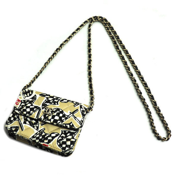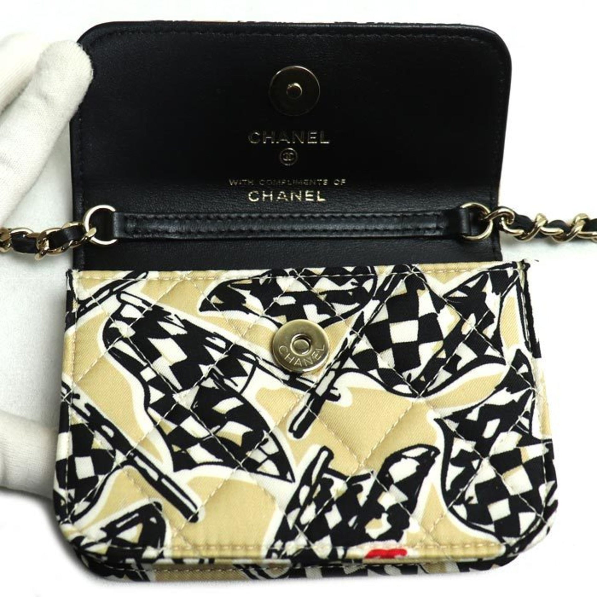 CHANEL Checkered Flag Year-End Shoulder Bag Beige Black Women\'s