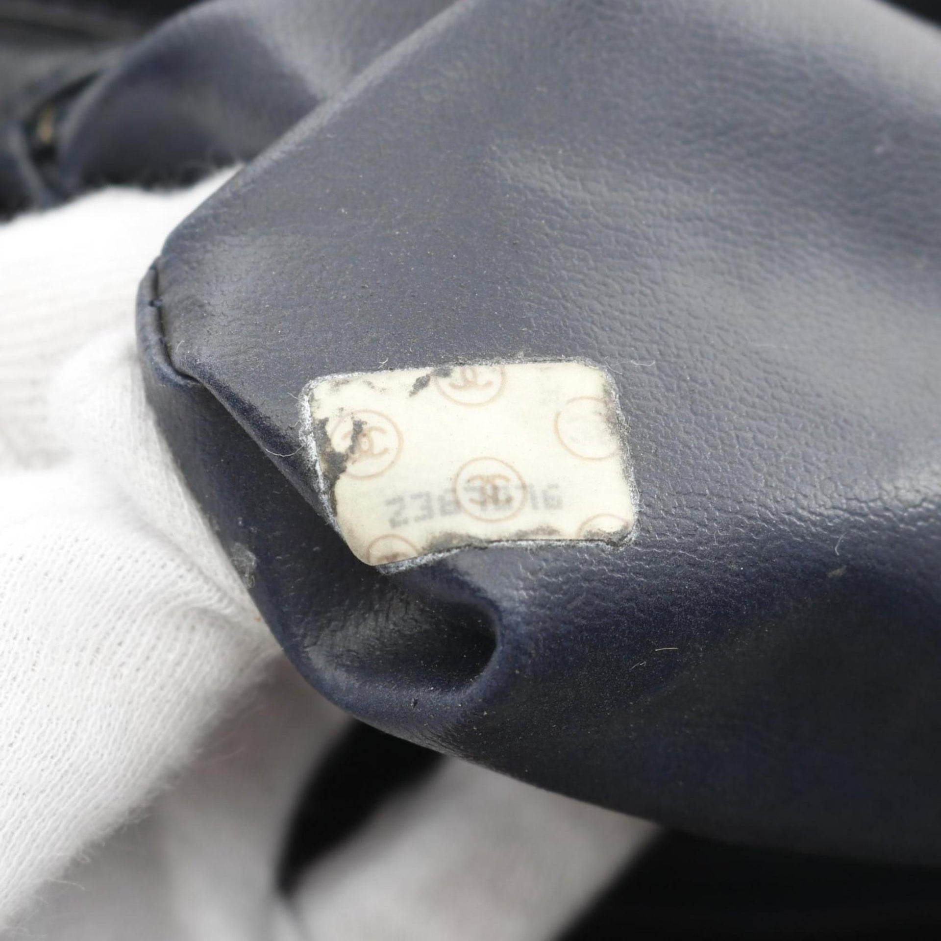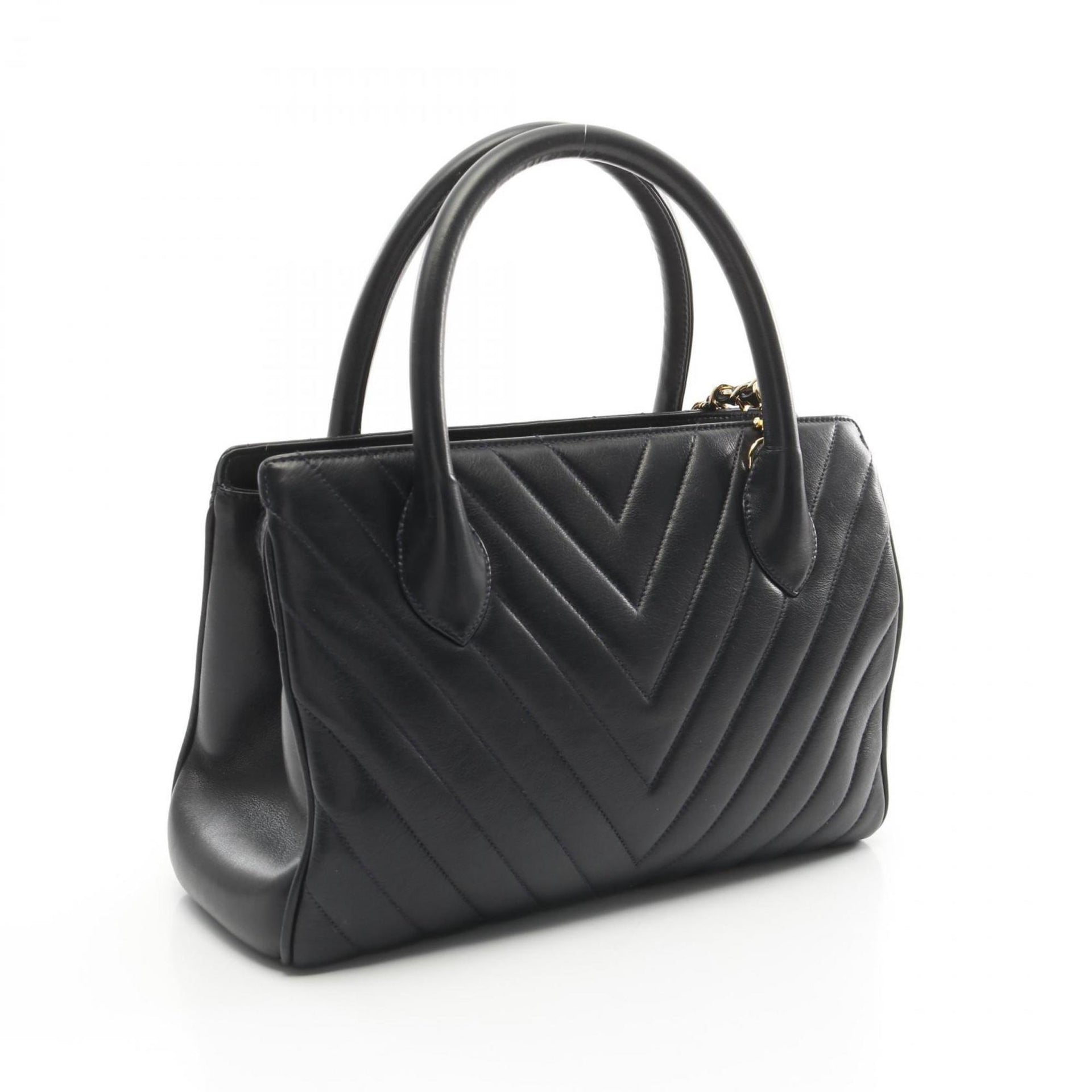 CHANEL Chevron V-stitch handbag, lambskin, women\'s, navy