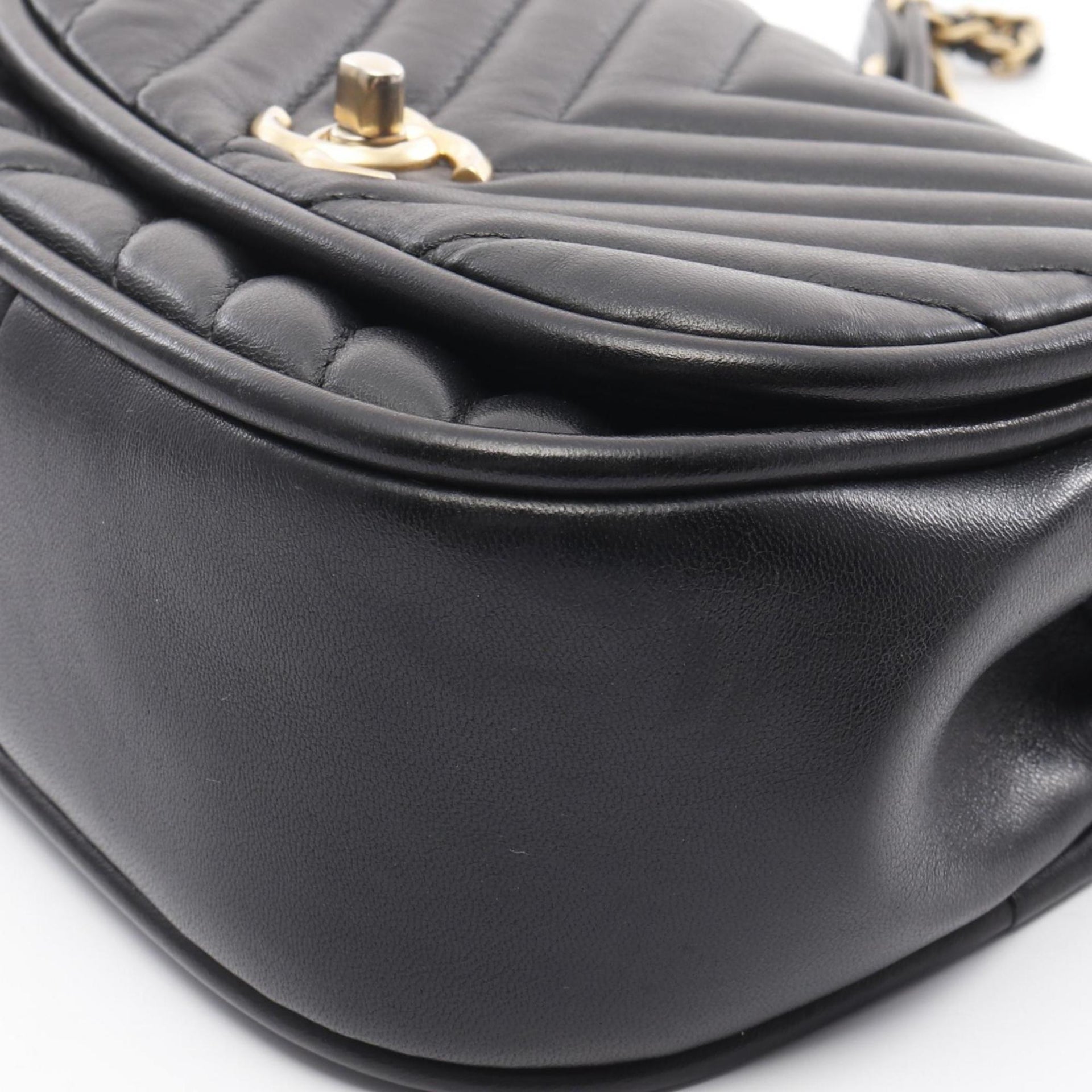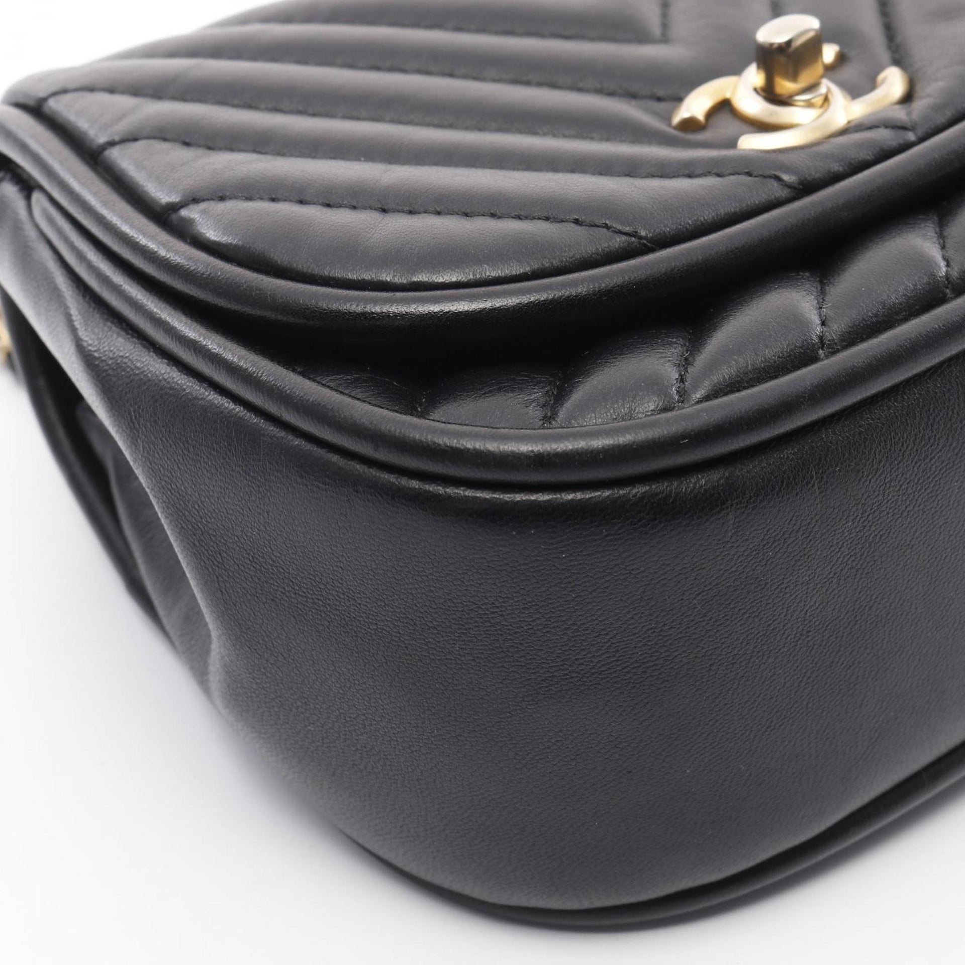 CHANEL Chevron V-stitch shoulder bag, lambskin, women\'s, black