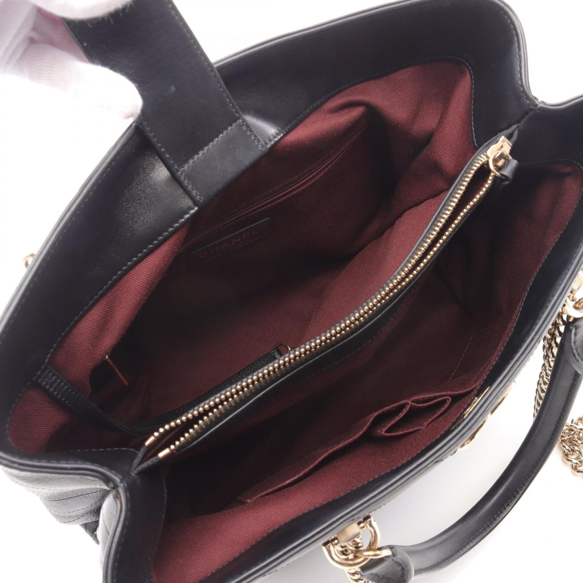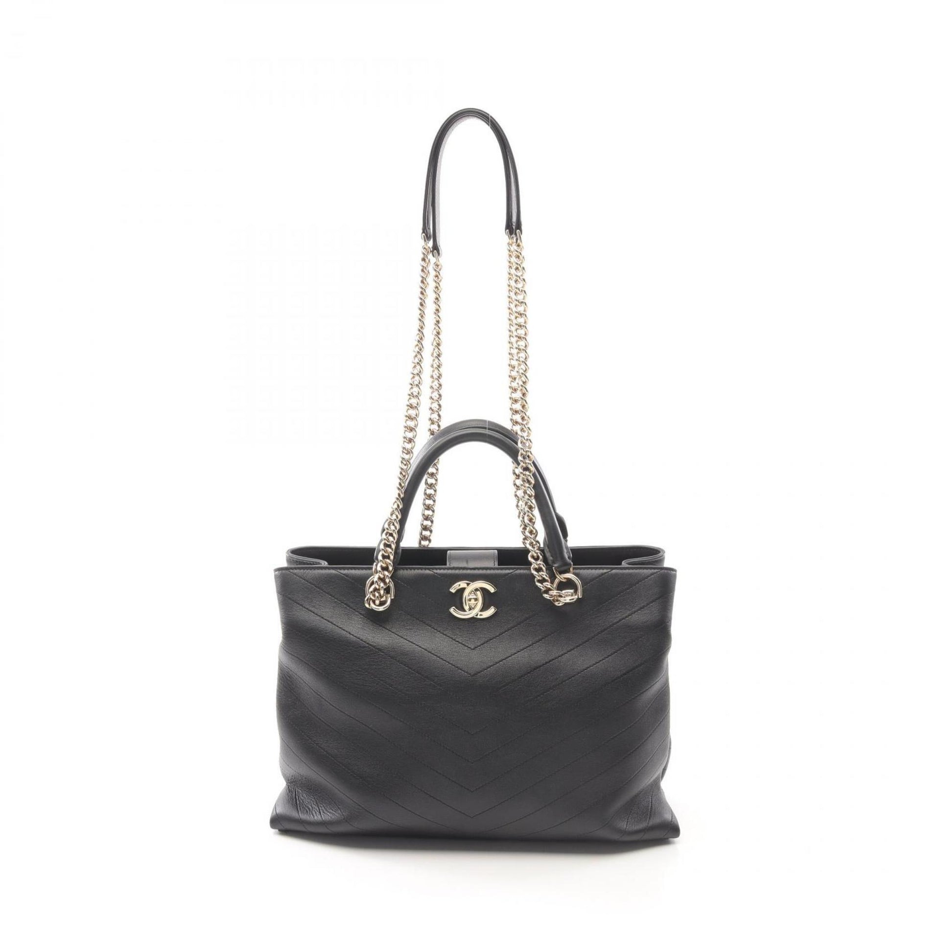 CHANEL Chevron V-stitch Tote Bag Leather Women\'s Black