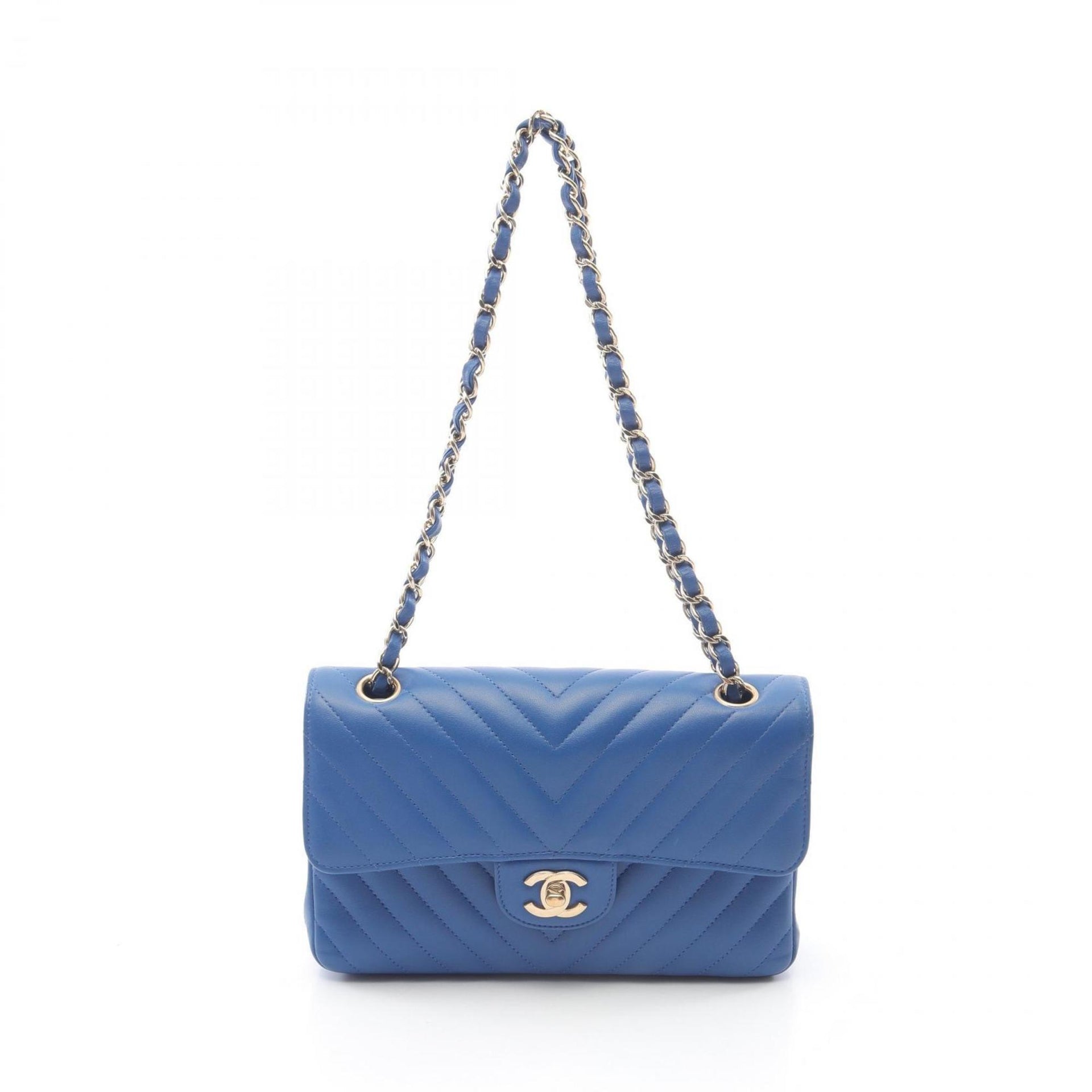CHANEL Chevron V-stitch W-flap shoulder bag Lambskin (sheepskin) Women\'s Blue