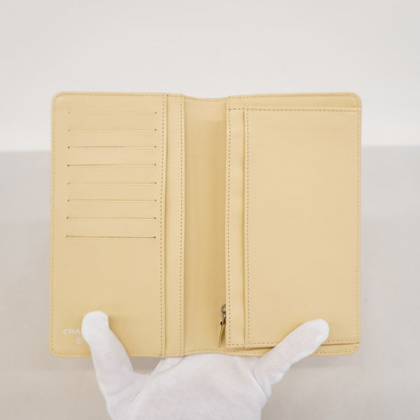 Chanel Chocobar Long Wallet in Patent Leather, Beige, Women\'s