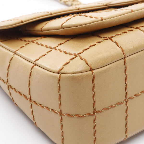 CHANEL Chocolate Bar Wild Stitch Shoulder Bag Lambskin (Sheepskin) Women\'s Beige
