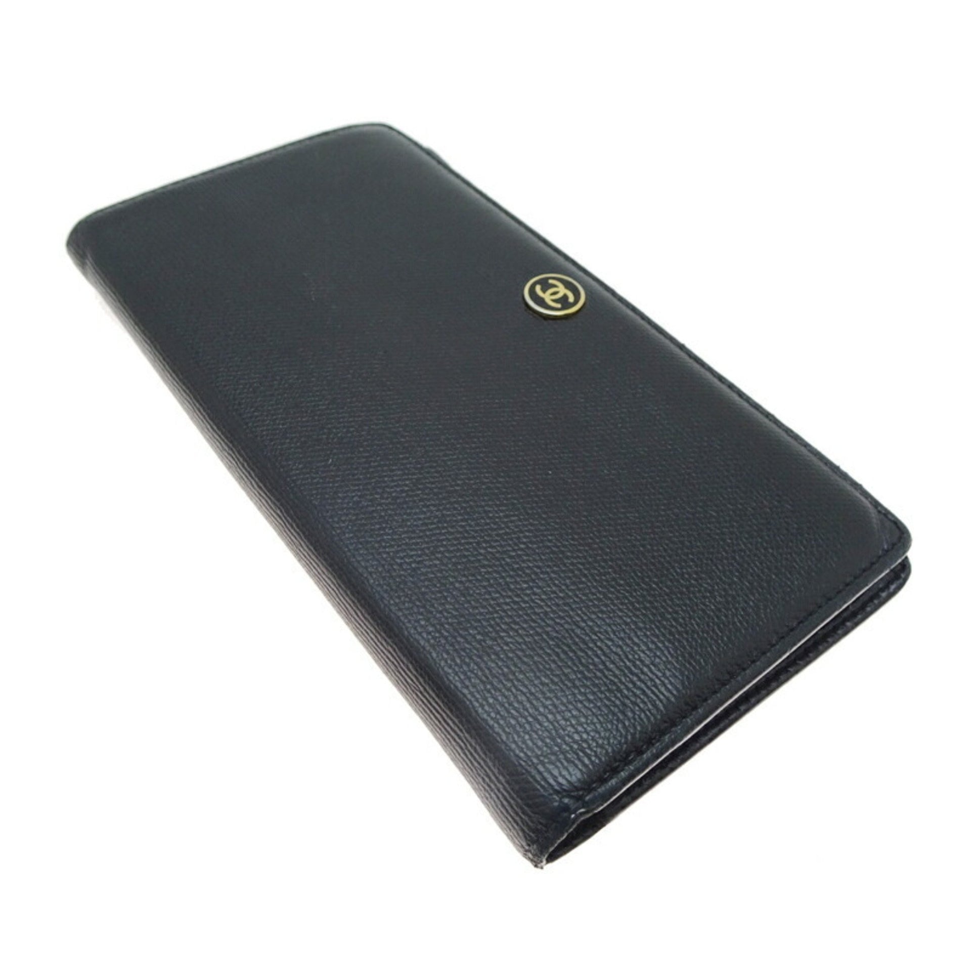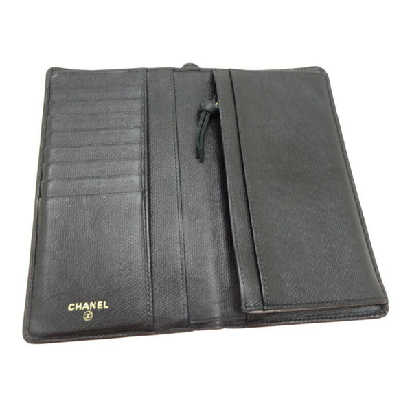 Chanel Coco Button Long Wallet, Women\'s, A20904, Leather, Black