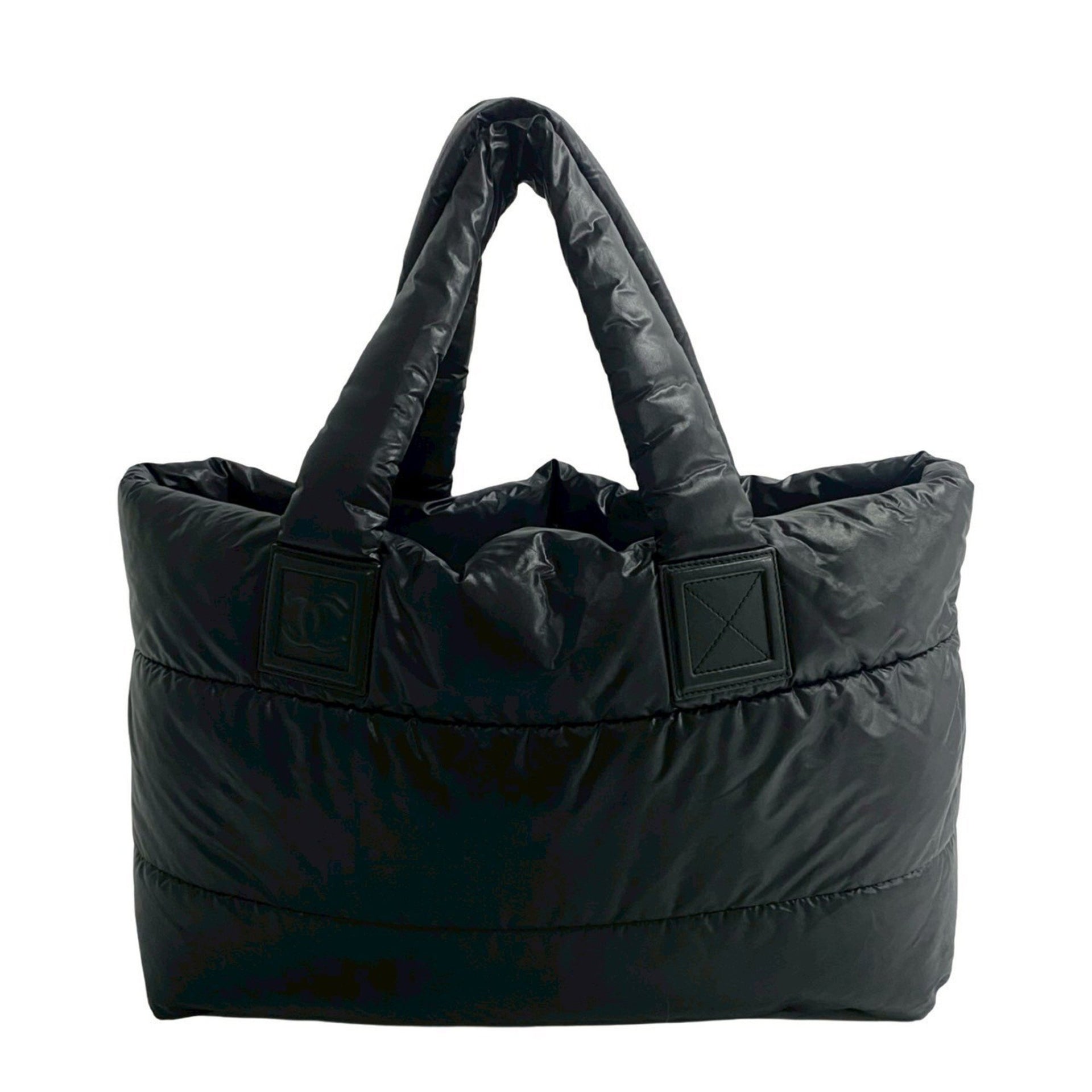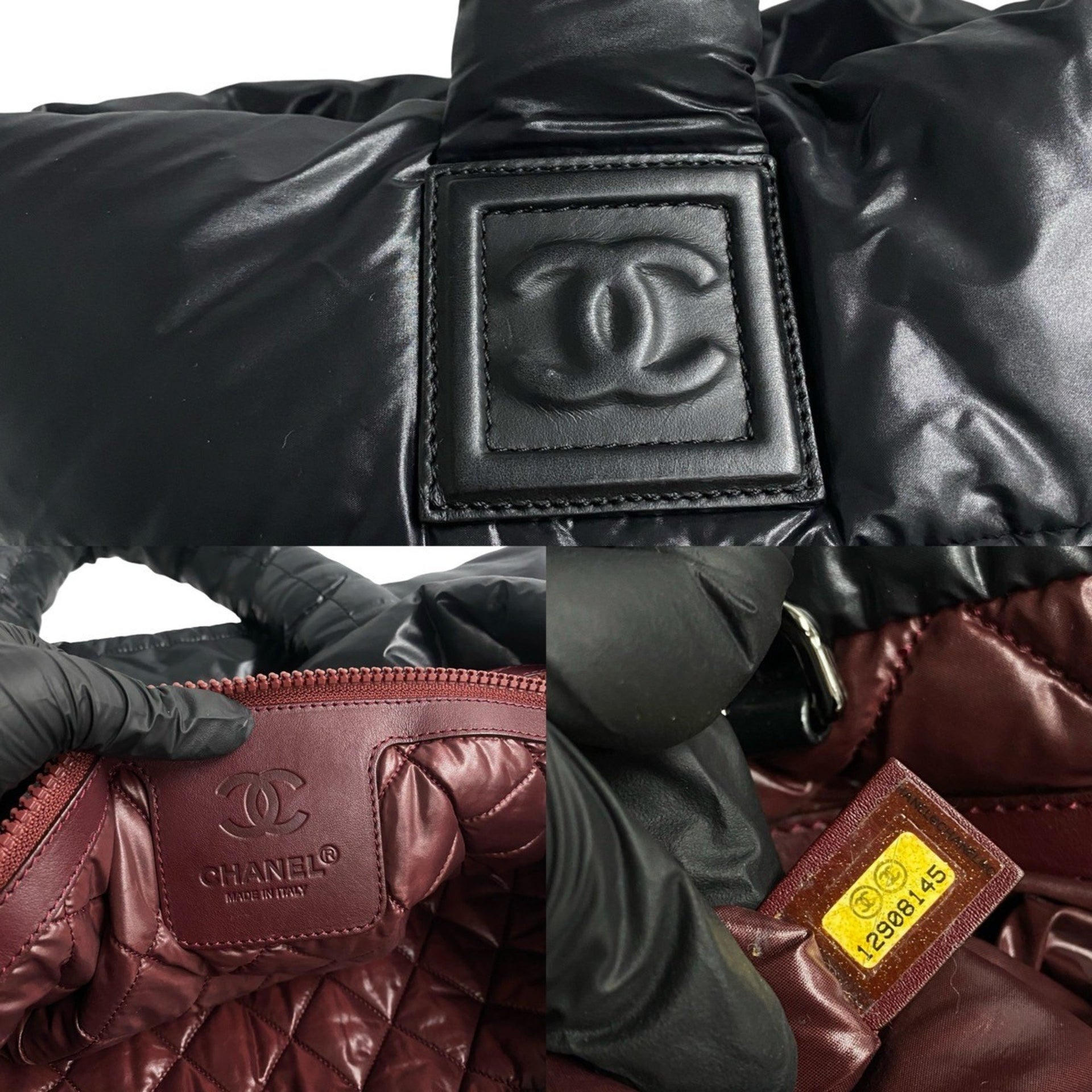 CHANEL Coco Cocoon Mark Nylon Tote Bag Handbag Black 45671