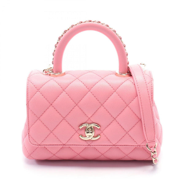 CHANEL Coco Handle XXS Handbag Leather Women\'s Pink AS2215