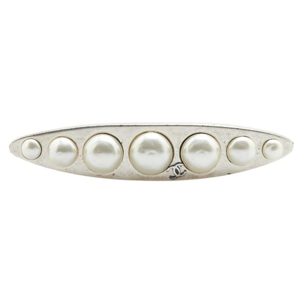 Chanel Coco Mark Brooch in Silver Metal with Faux Pearls for Women