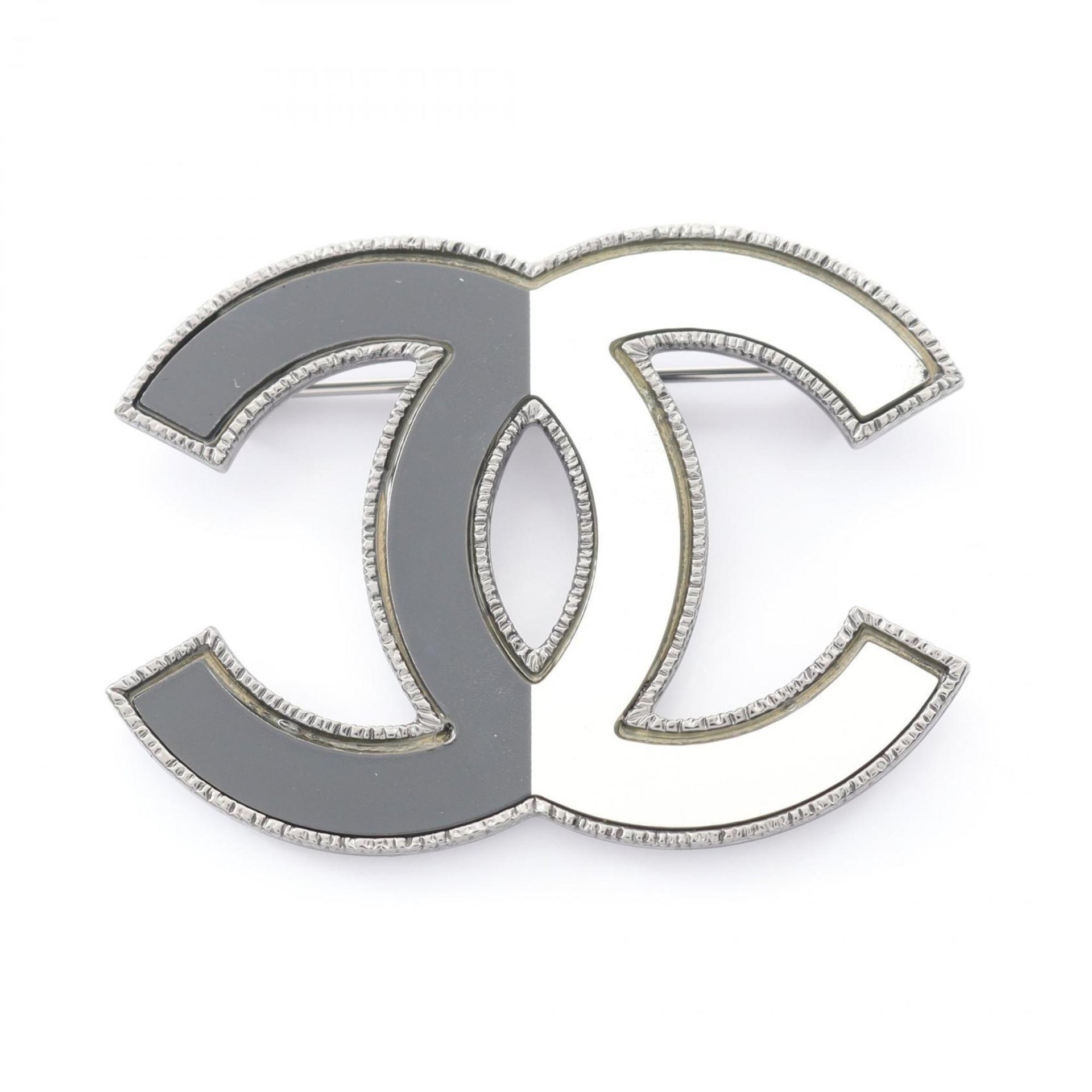 CHANEL Coco Mark Brooch, Stainless Steel, Women\'s, Silver, Black, White, A16B
