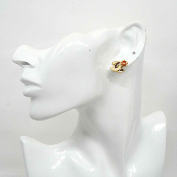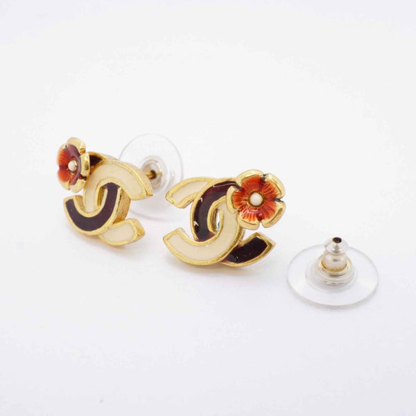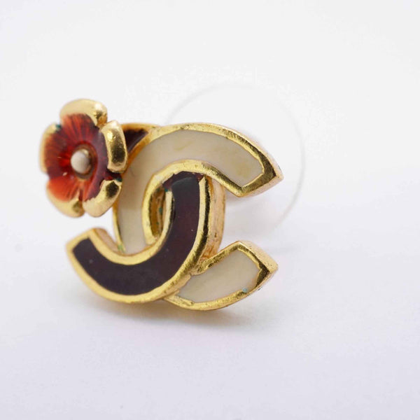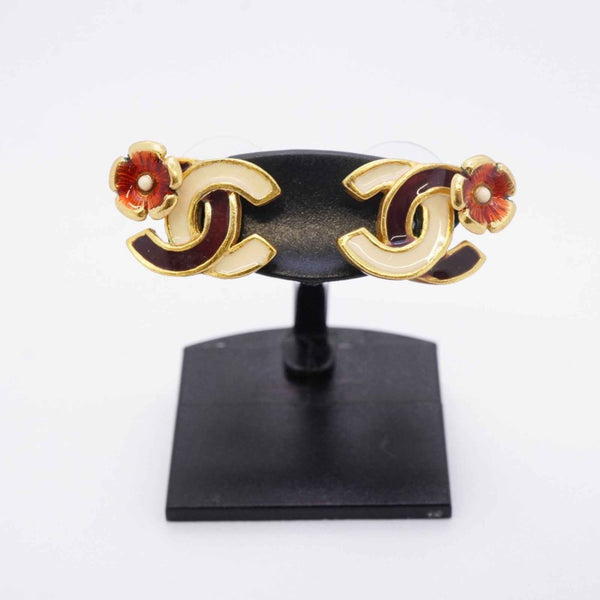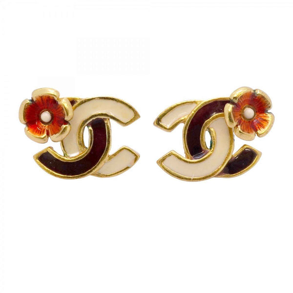 Chanel Coco Mark Camellia Earrings, GP Plated, Gold, Red, Beige, Women\'s