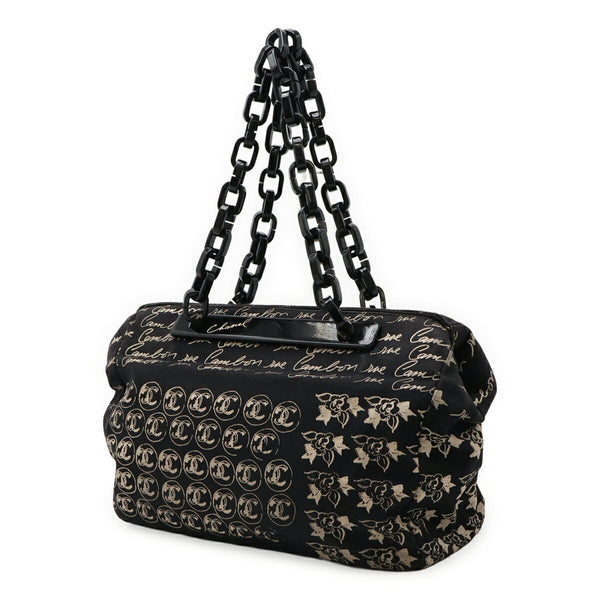 CHANEL Coco Mark Camellia Plastic Chain Tote Bag Shoulder Canvas Black Pale Pink
