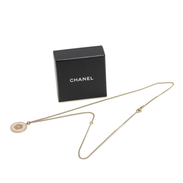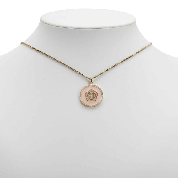 CHANEL Coco Mark Camellia Round Necklace, Gold and Pink Plated, Women\'s