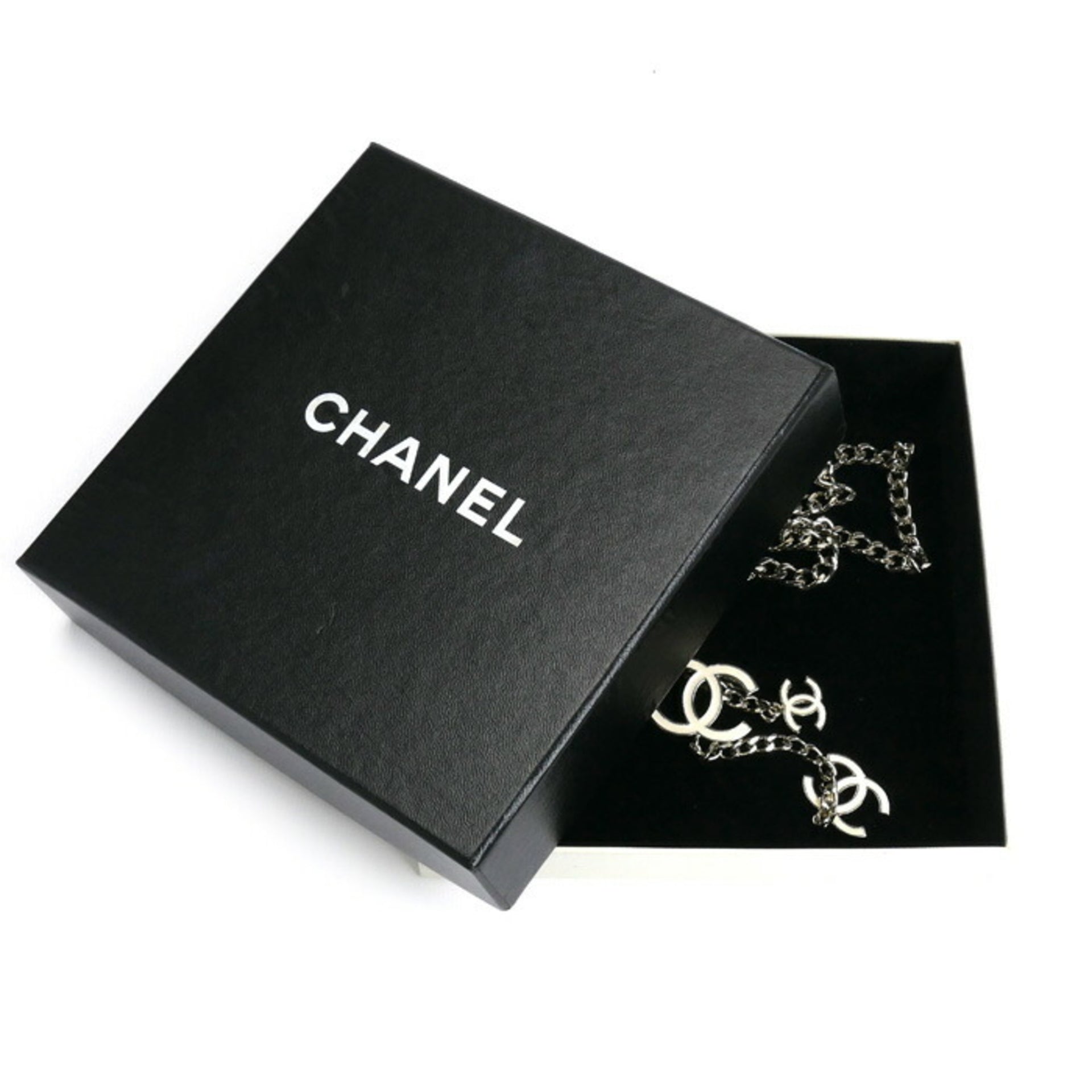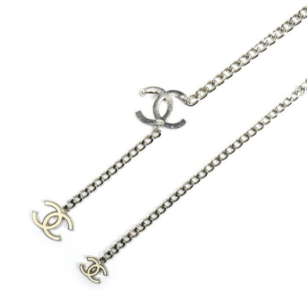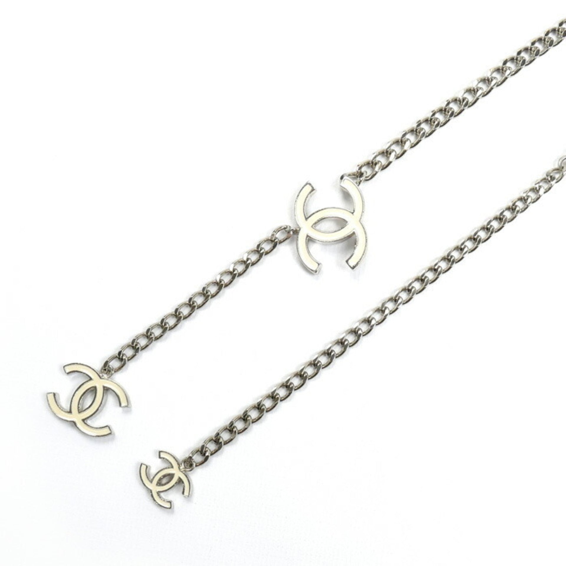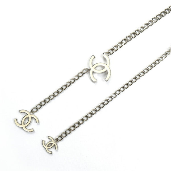 CHANEL Coco Mark Chain Belt Silver/White Women\'s 05V