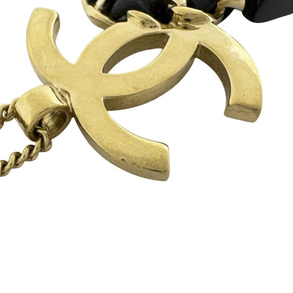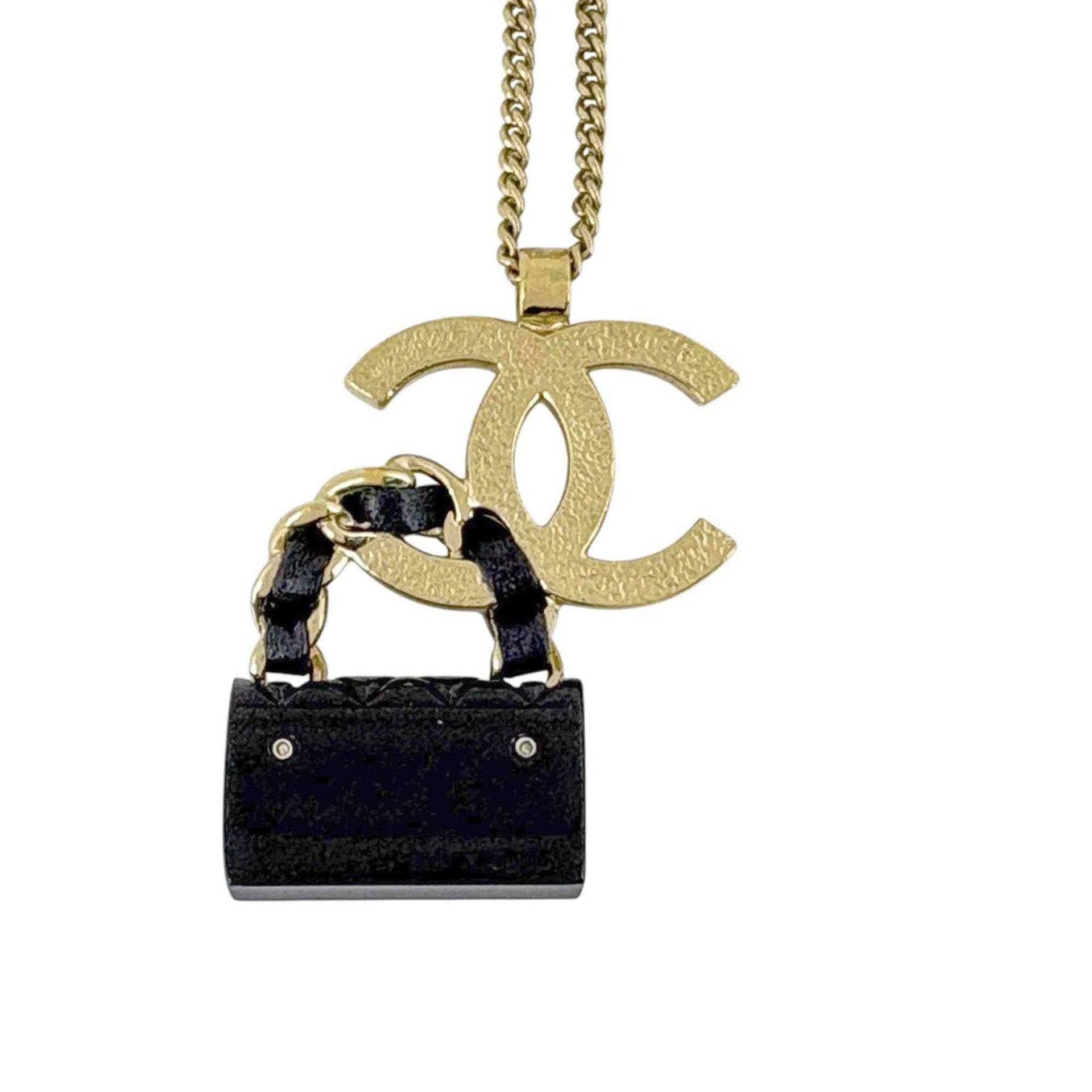 CHANEL Coco Mark Chain Necklace Matelasse Bag Charm GP Gold Black Women\'s
