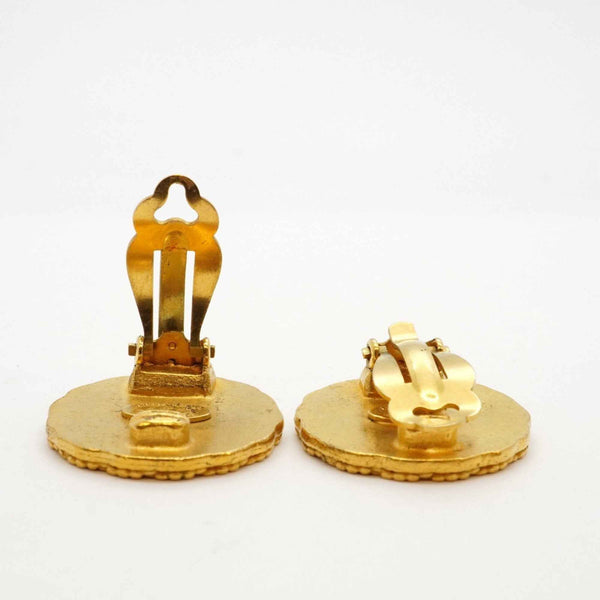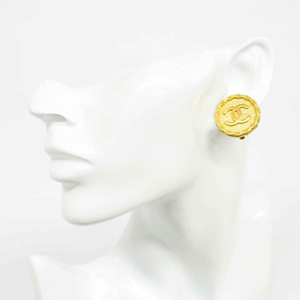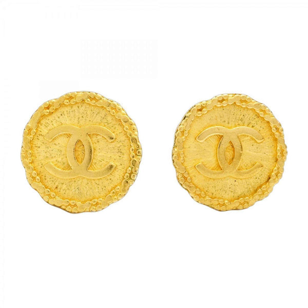 Chanel Coco Mark Circle Earrings, GP Plated Gold for Women