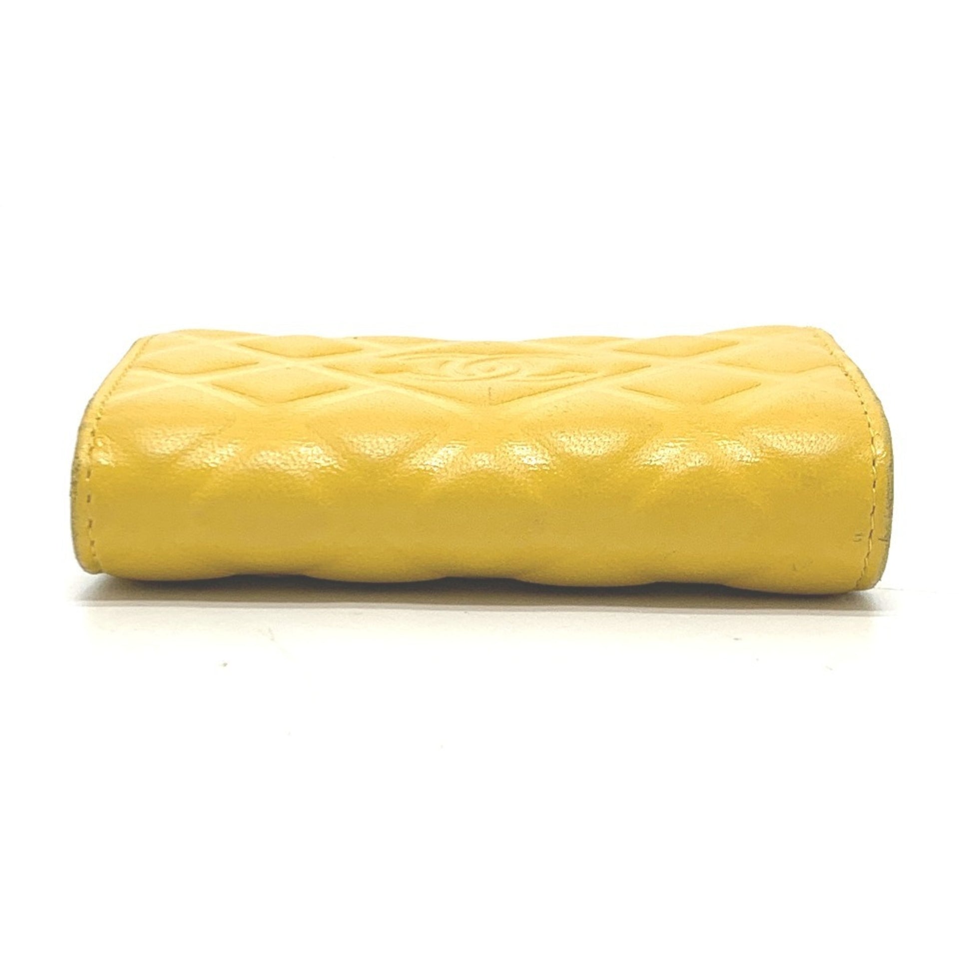 CHANEL Coco Mark Diamond CC 4-Ring Key Case with Ring, Calfskin, Women\'s, Yellow