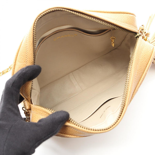 CHANEL Coco Mark Diamond Stitch Shoulder Bag in Grained Calfskin Leather, Beige