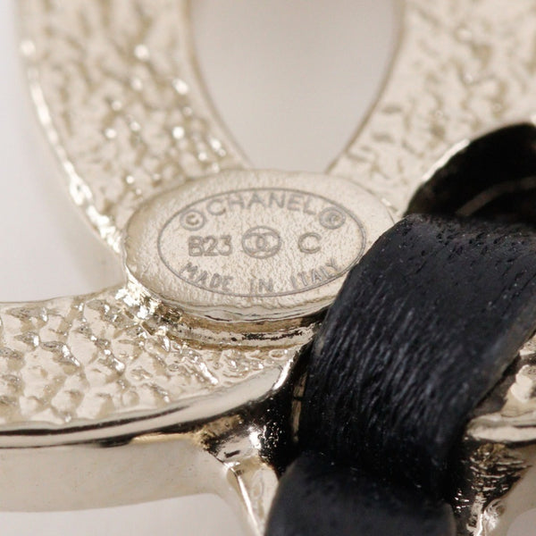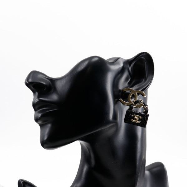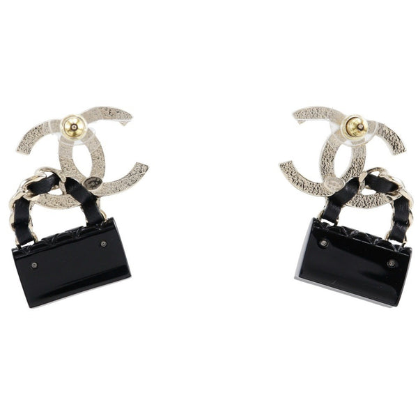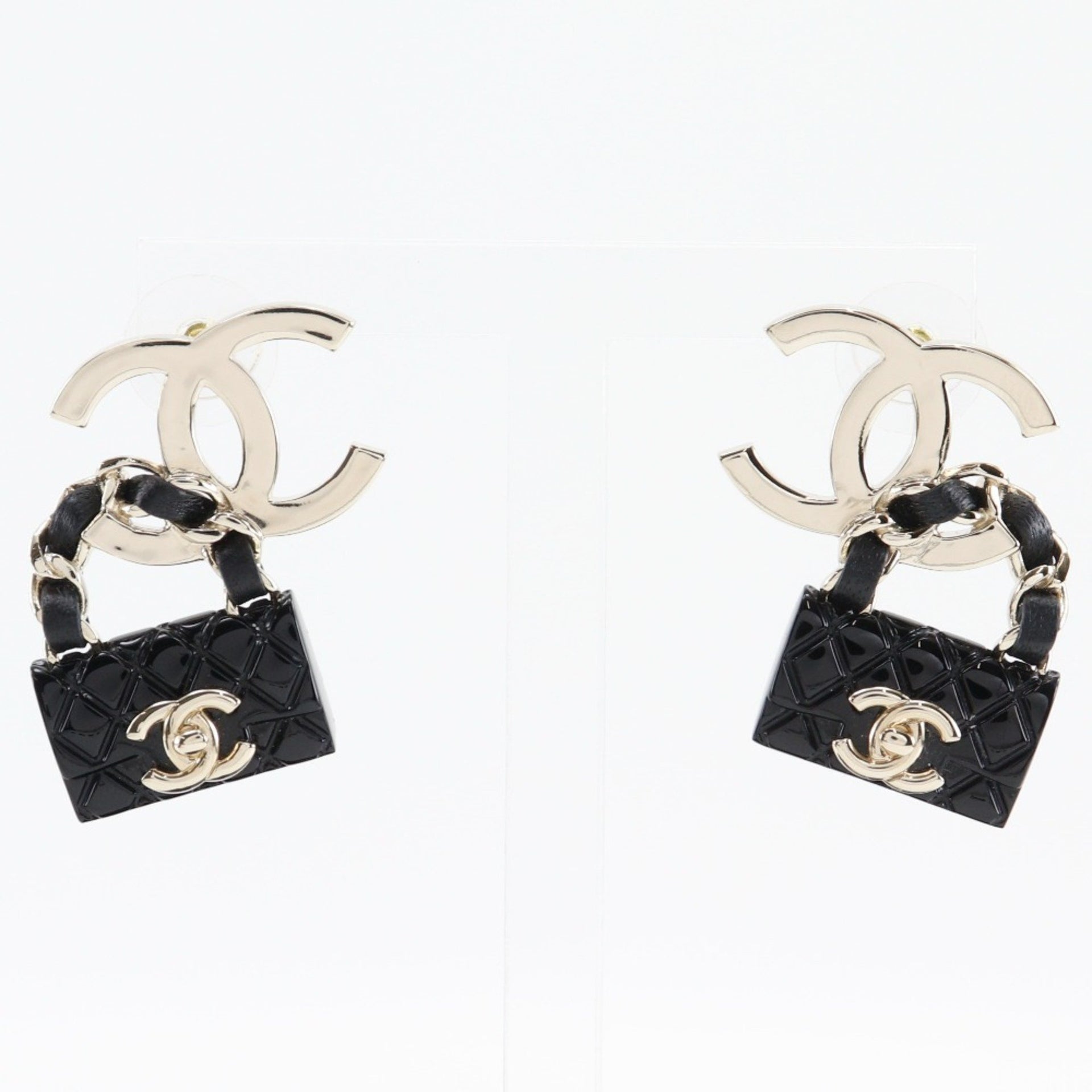 CHANEL Coco Mark Earrings, Matelasse Bag Motif, Cruise Collection x Plastic, 2023, Silver/Black, B23 C, Approx. 16.0g, COCO Mark, Women\'s