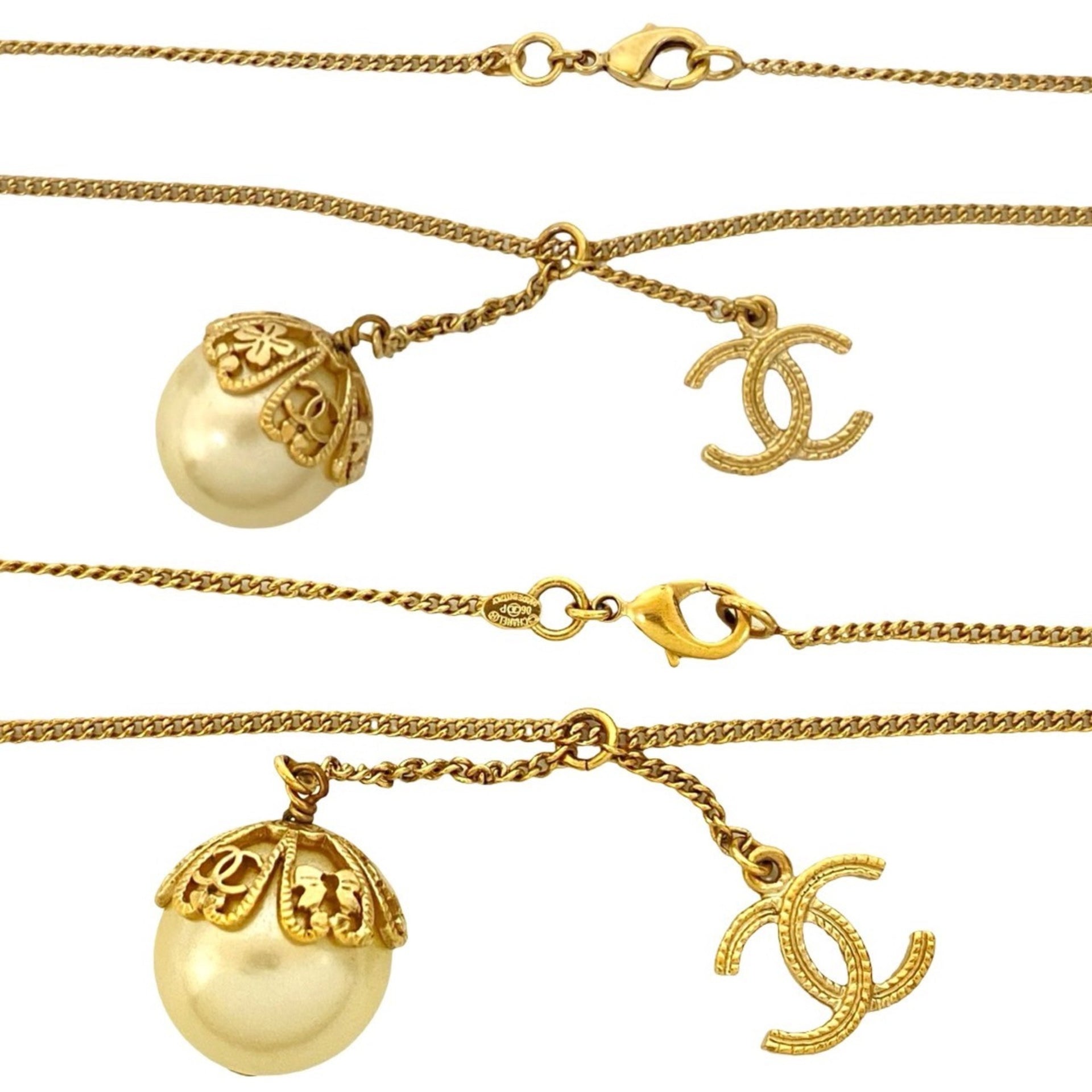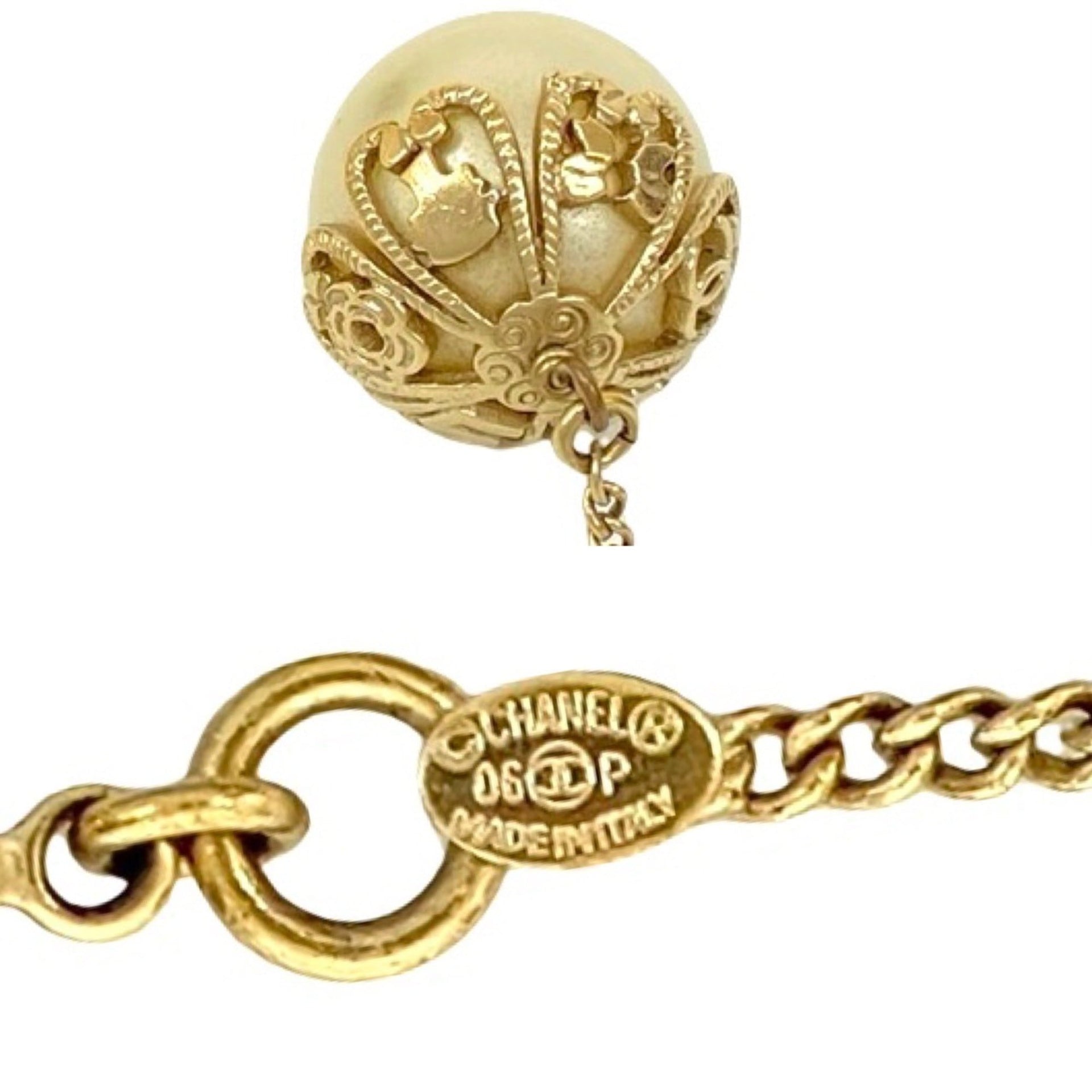CHANEL Coco Mark GP Fake Pearl Necklace Choker Pendant Gold 87989