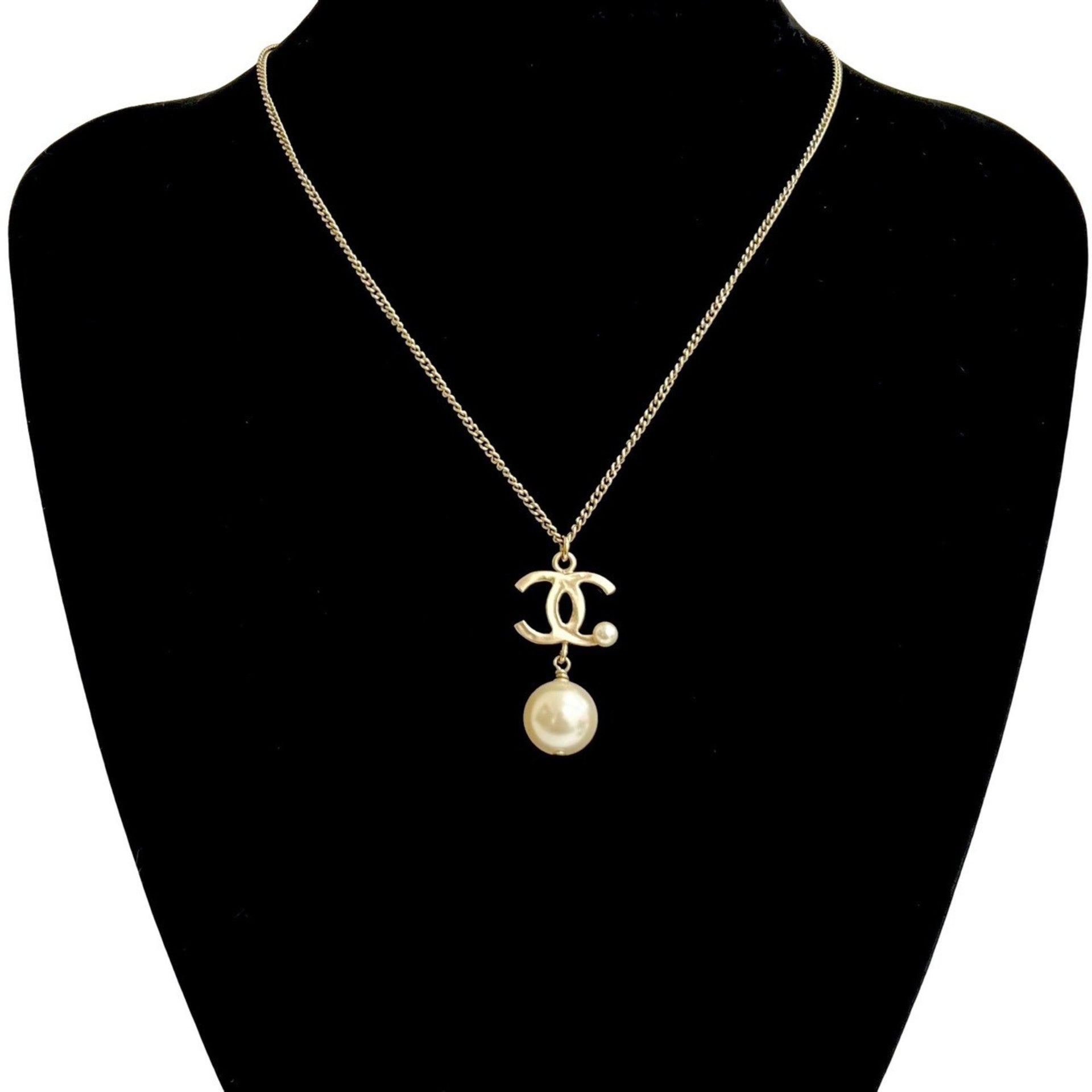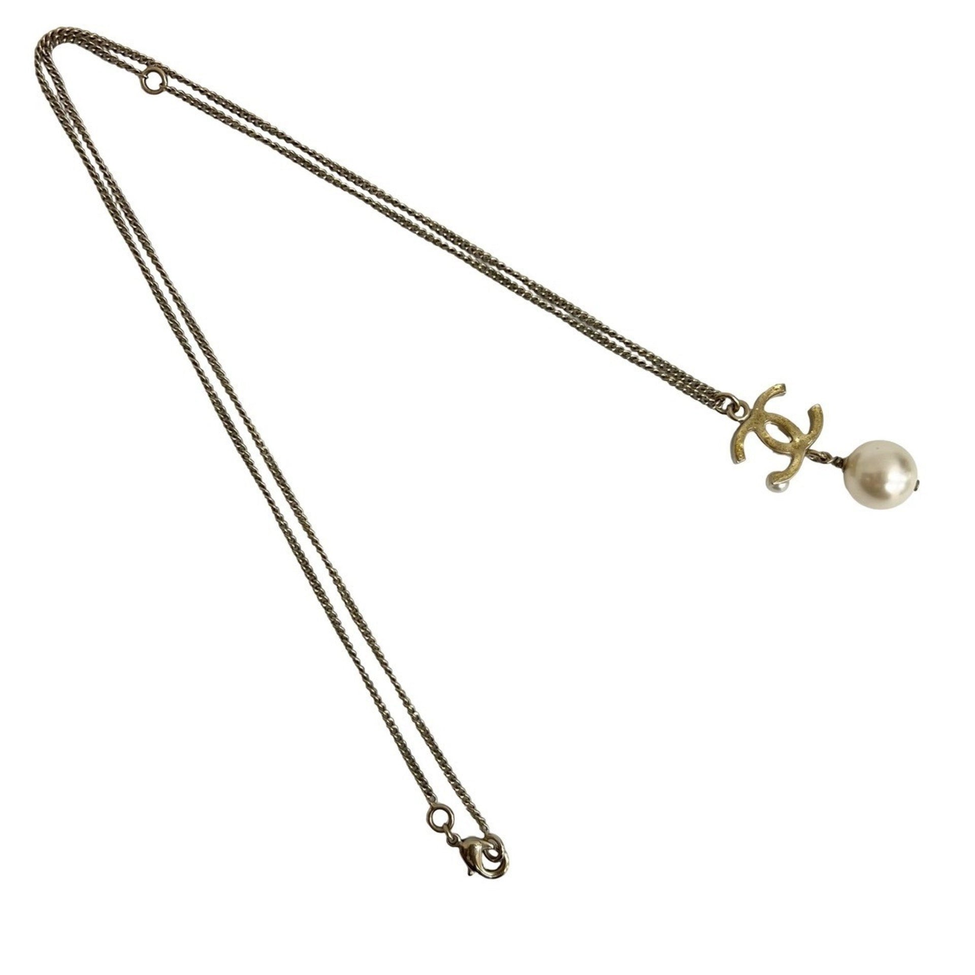 CHANEL Coco Mark GP Faux Pearl Necklace Pendant Choker Gold 11421