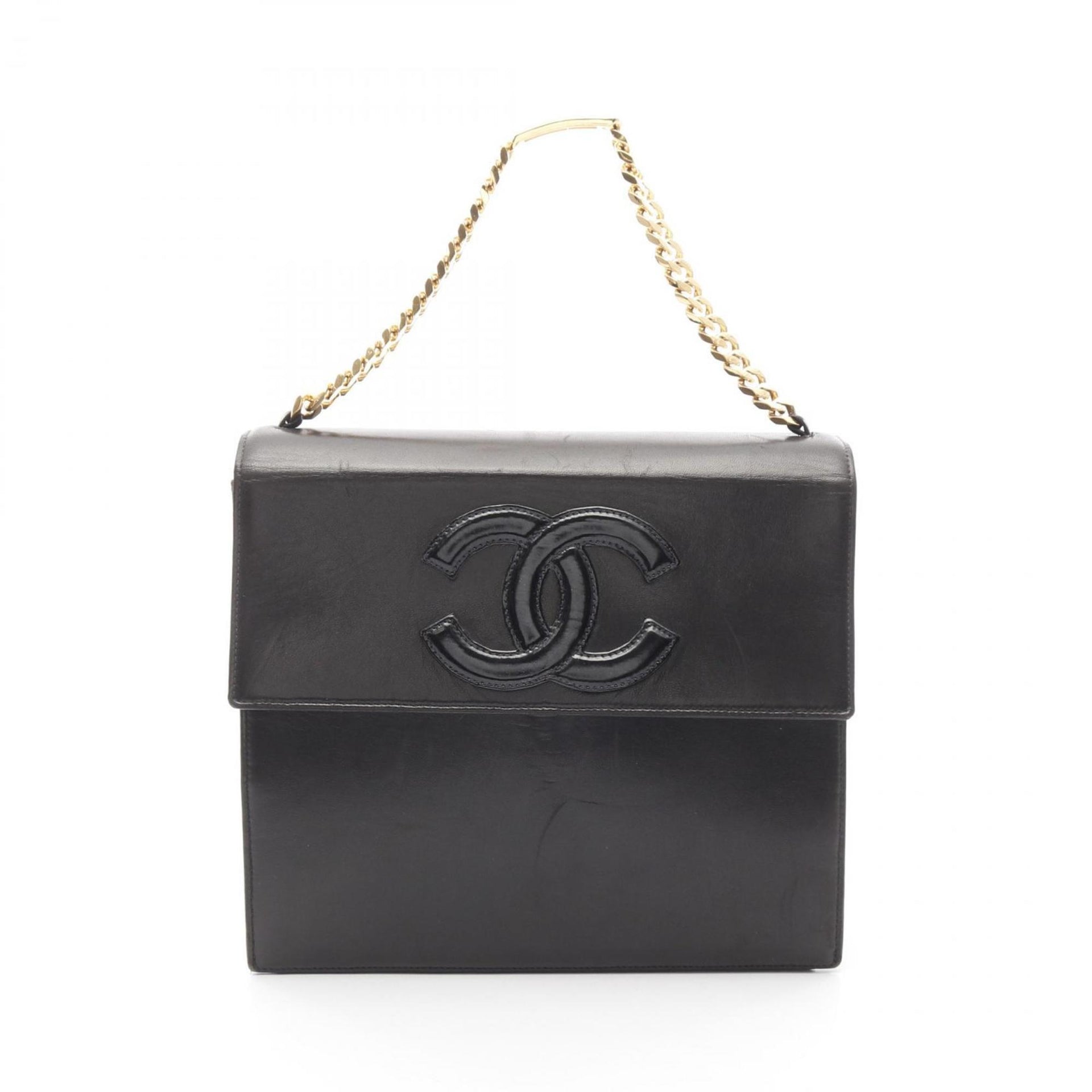 CHANEL Coco Mark Handbag, Lambskin, Women\'s, Black
