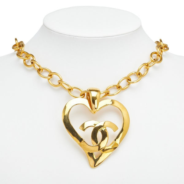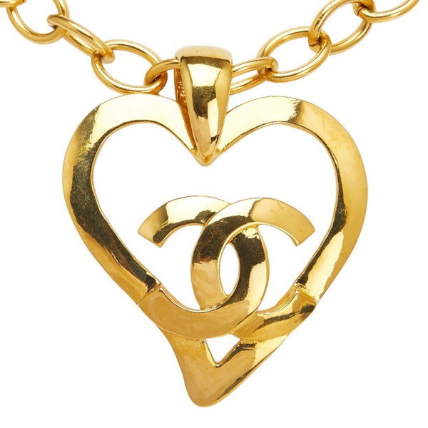 Chanel Coco Mark Heart Motif Chain Necklace, Gold Plated, Women\'s, CHANEL