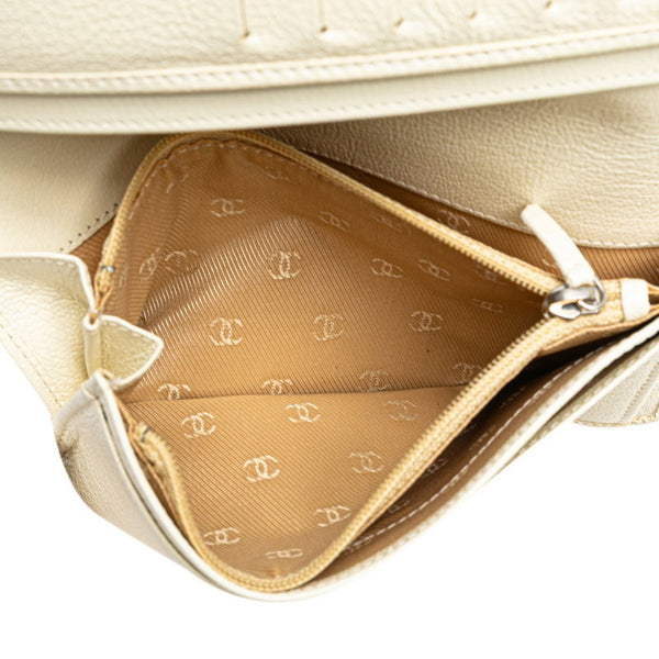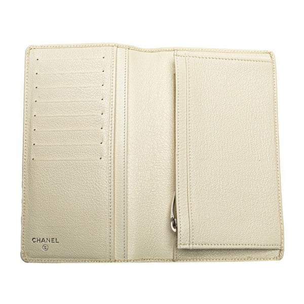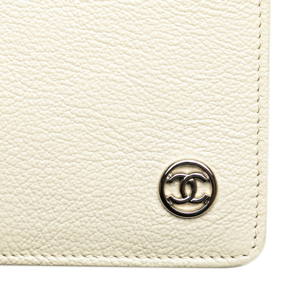 CHANEL Coco Mark Long Wallet White Leather Women\'s