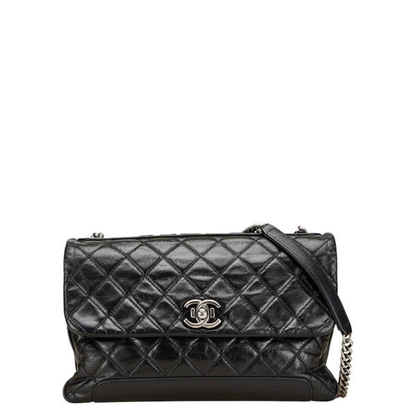 CHANEL Coco Mark Matelasse Crossbody Chain Shoulder Bag in Black Leather for Women