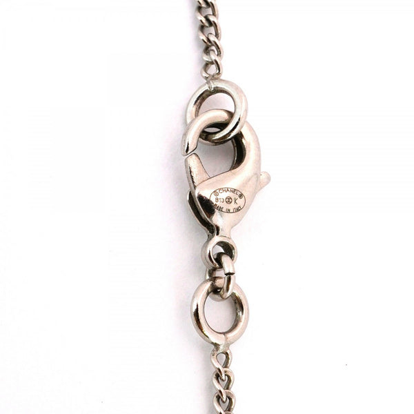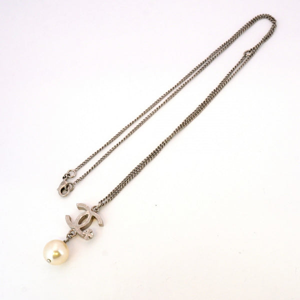 Chanel Coco Mark Metal Faux Pearl Silver Necklace for Women