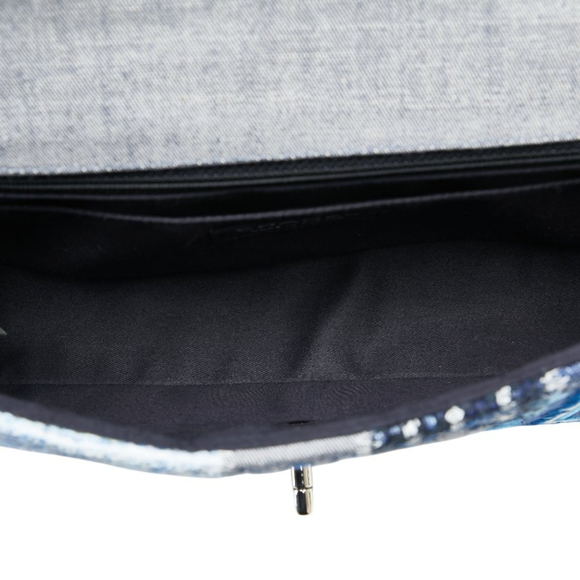 Chanel Coco Mark Patchwork Chain Shoulder Bag Handbag Blue Silver Multicolor Denim Caviar Skin Women\'s CHANEL