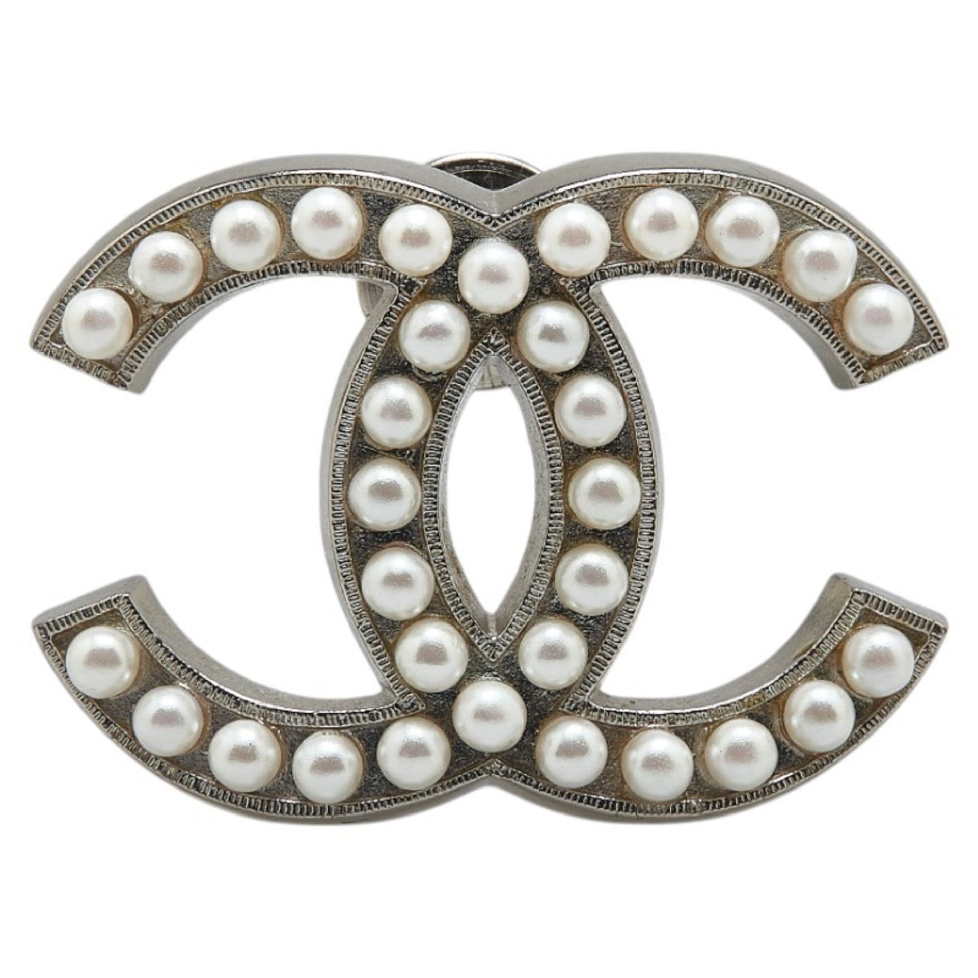 Chanel Coco Mark Pearl Brooch Silver Metal Women\'s CHANEL