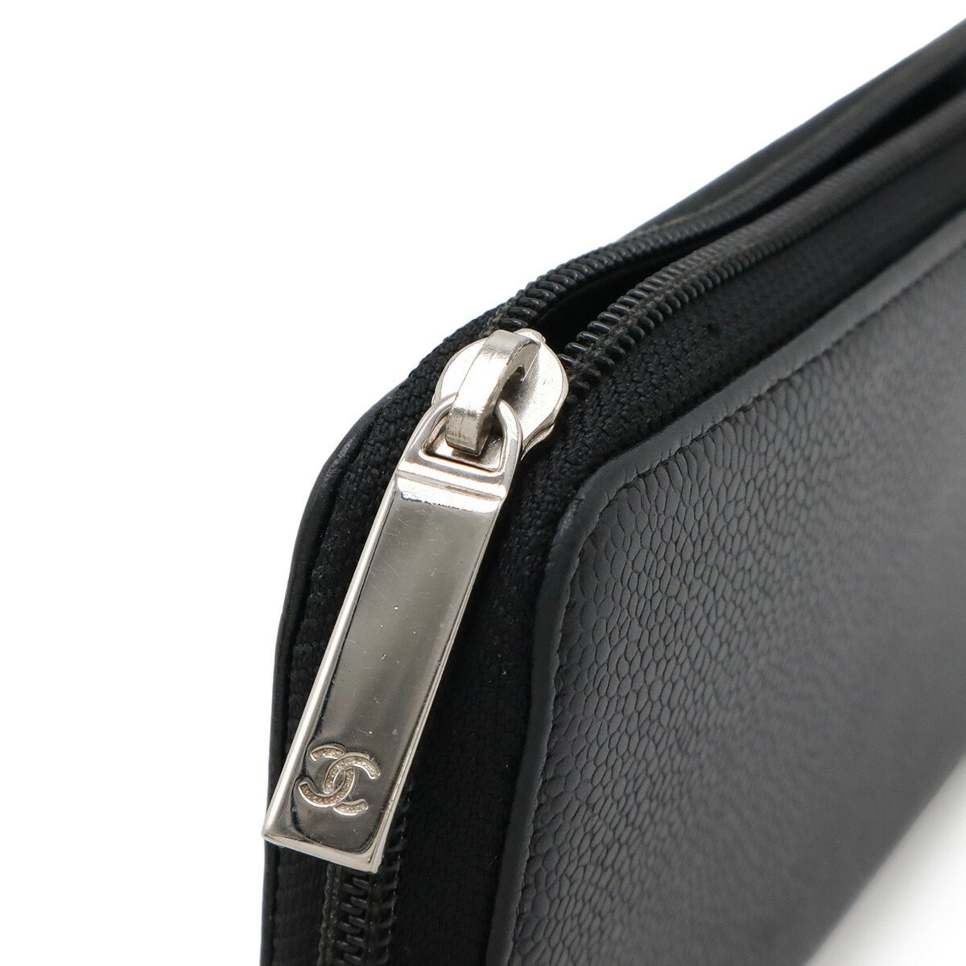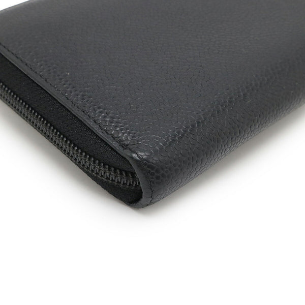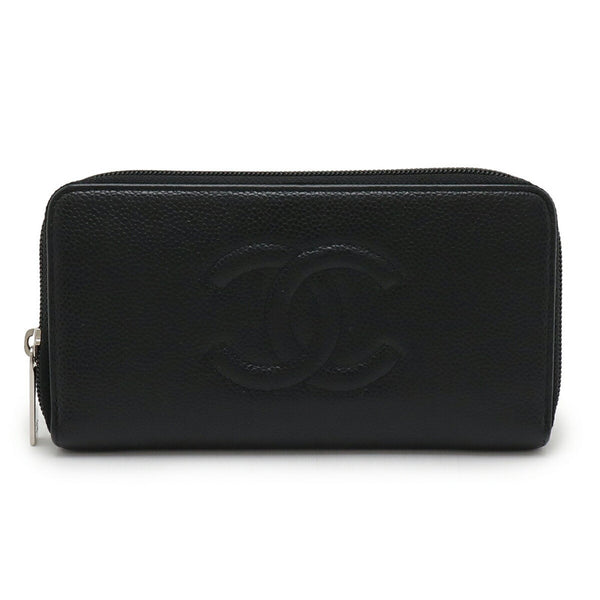 CHANEL Coco Mark Round Long Wallet Caviar Skin Leather Black A50071