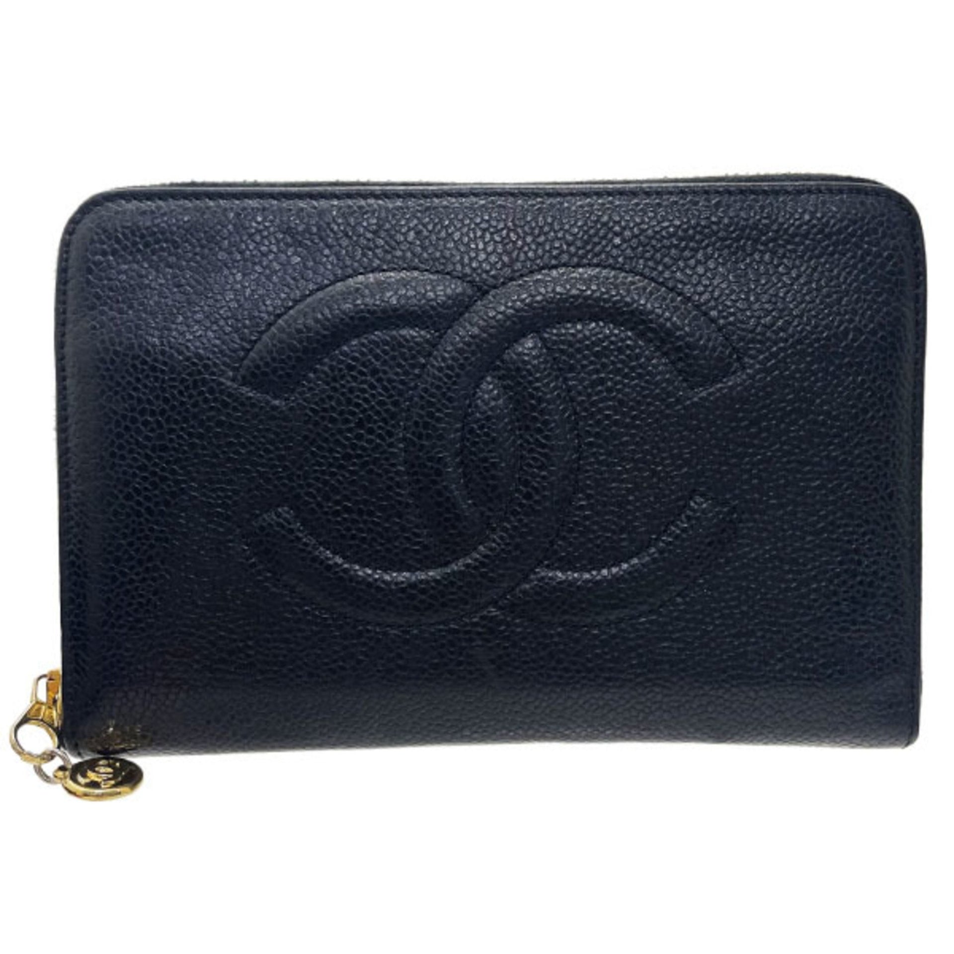 CHANEL Coco Mark Round Long Wallet in Caviar Leather, Black, CC KWR-15630