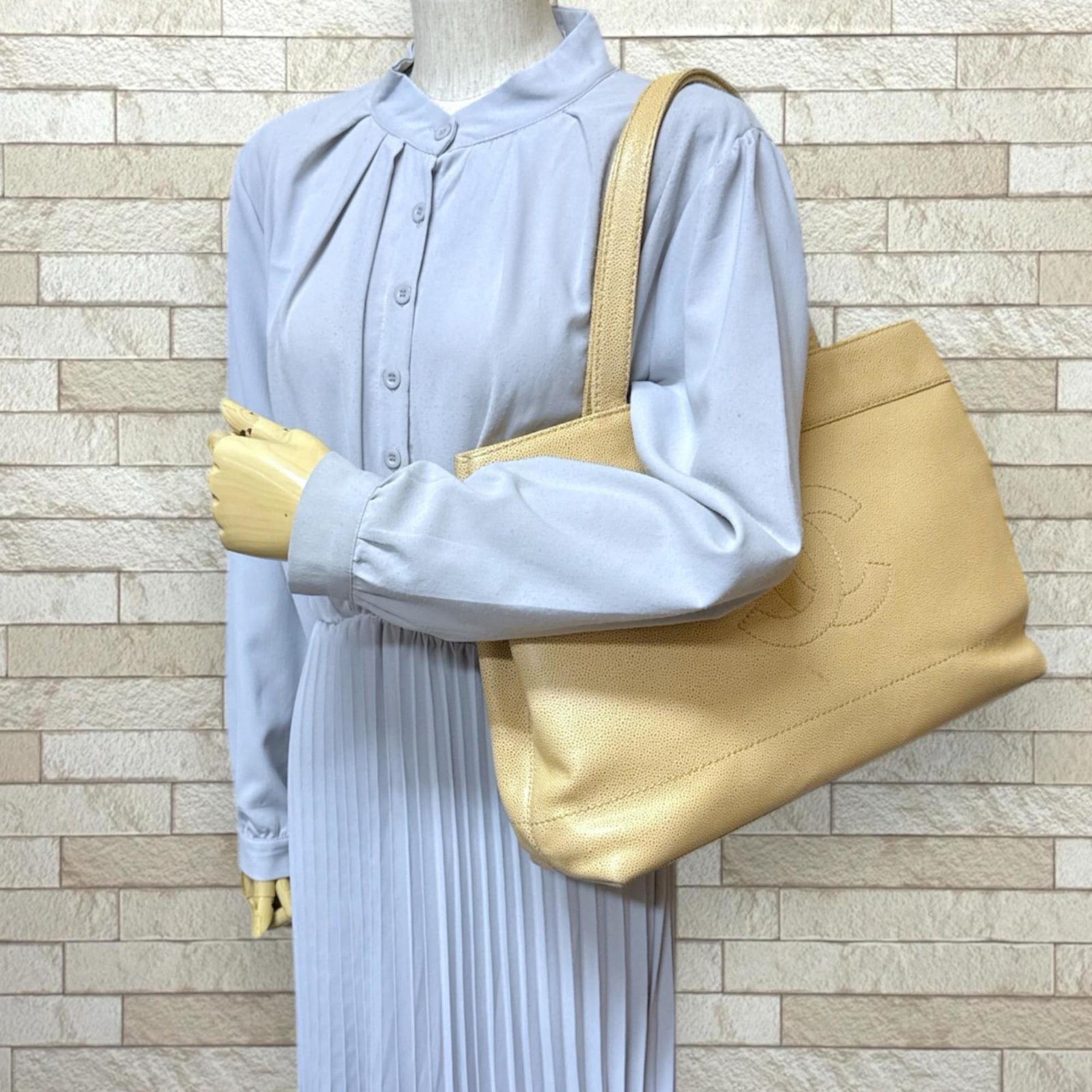 Chanel Coco Mark Tote Bag, Caviar Skin, Beige, Women\'s, CHANEL