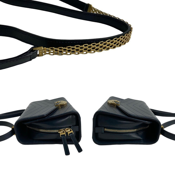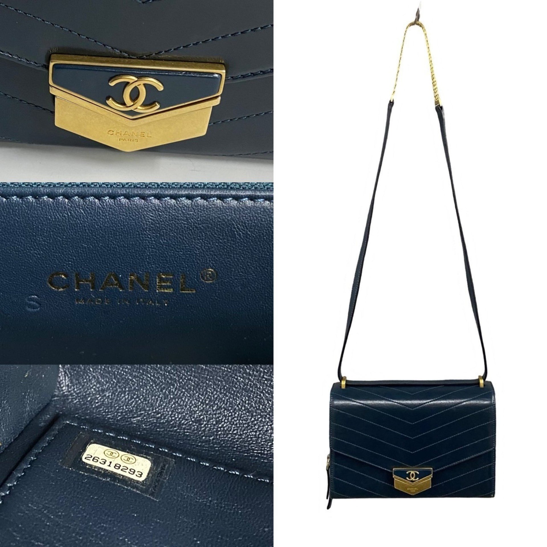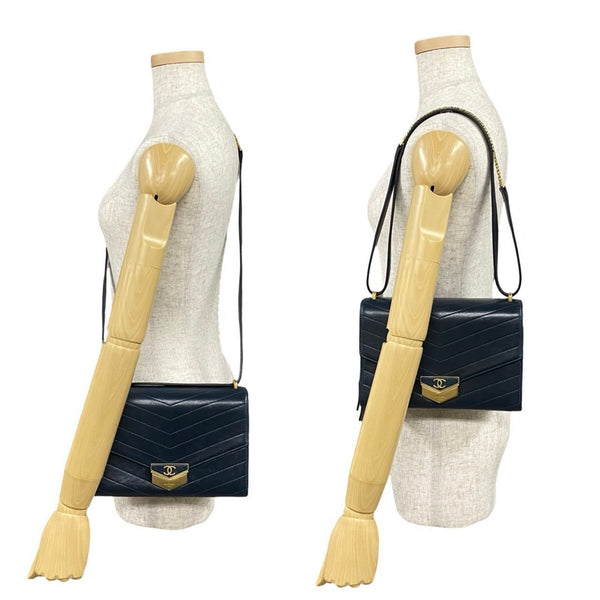 CHANEL Coco Mark V-Stitch Leather Semi-Shoulder Bag/Pochette in Navy 64288