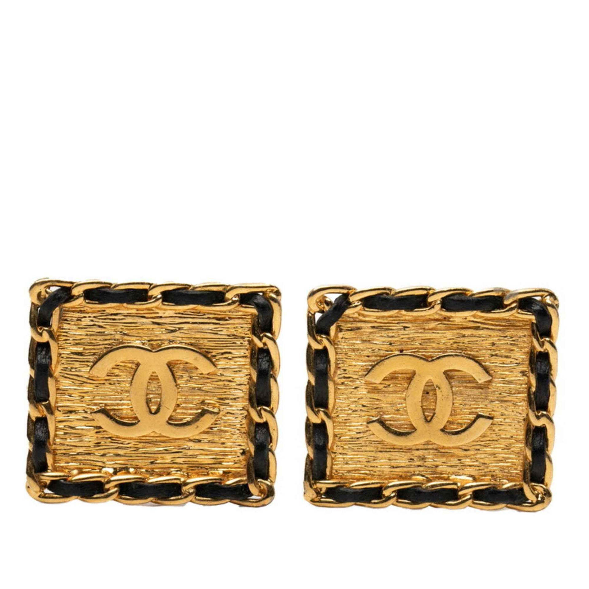 CHANEL Coco Mark Vintage Square Earrings in Gold and Black Plated Leather for Women